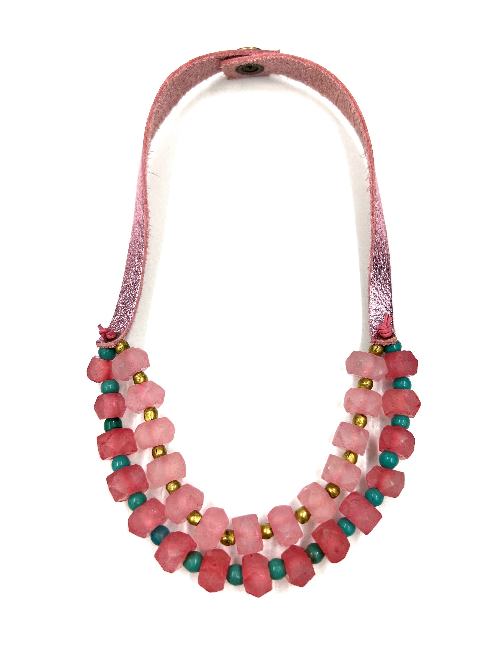 Recycled glass beads handcrafted from Indonesia. solid brass spacer beads