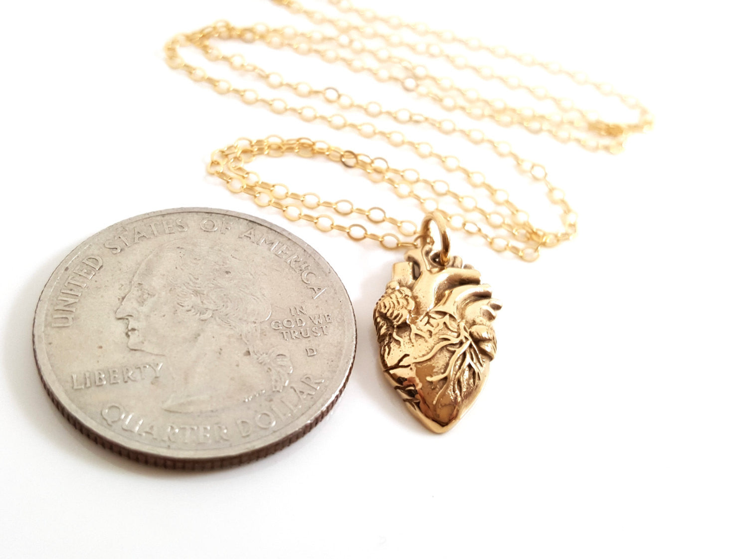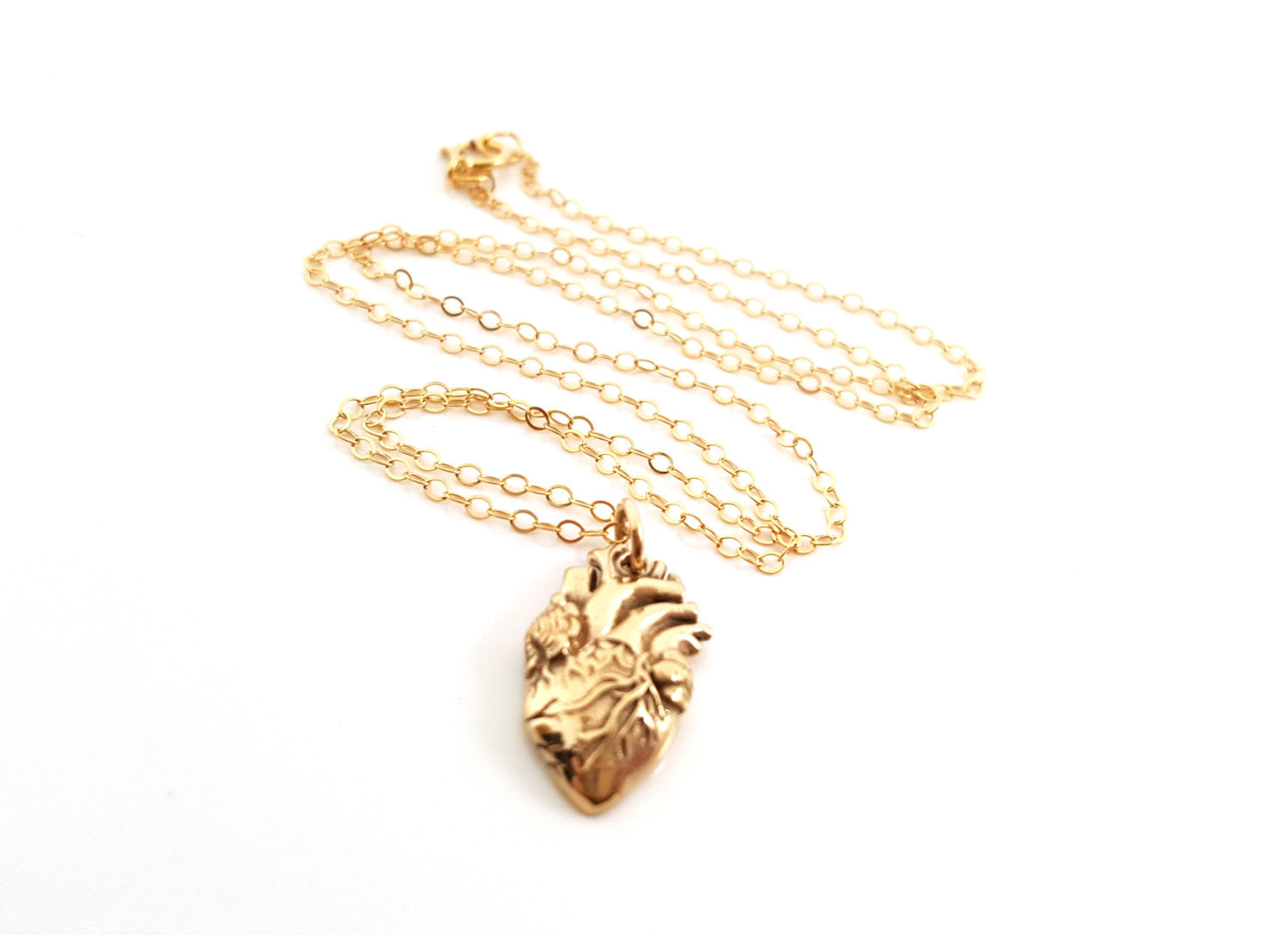 Anatomical Heart Charm 14k Gold Filled Necklace