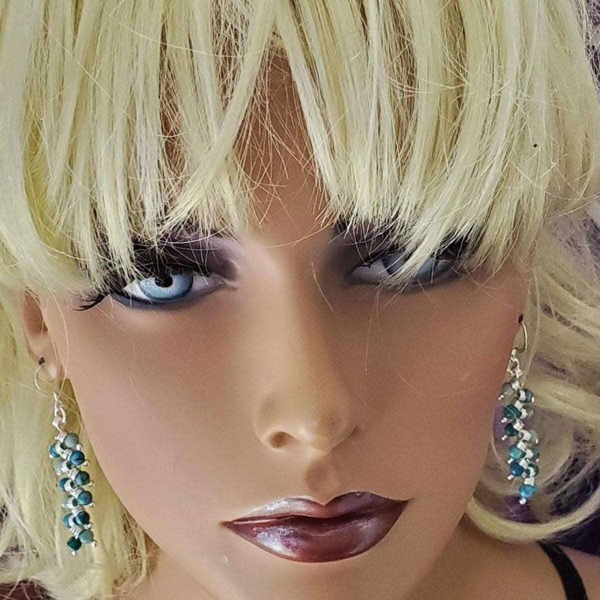The Handmade As Seen On TV Jane The Virgin Sterling Silver Turquoise Wire Wrapped Earrings, featuring exquisite turquoise and sterling silver wire wrapping. These As Seen On TV earrings offer a stylish and vibrant accessory to elevate your look with a touch of elegance. These stunning sterling silver earrings showcase expertly braided wire coils, each adorned with a vibrant turquoise jasper bead. Their gentle, flowing movement feels delightfully smooth and flexible, adding an elegant touch to any look. Experience the captivating blend of blue and green tones that make every pair truly unique and eye-catching. Enjoy the glamour of a celebrity while showcasing your own radiant beauty.