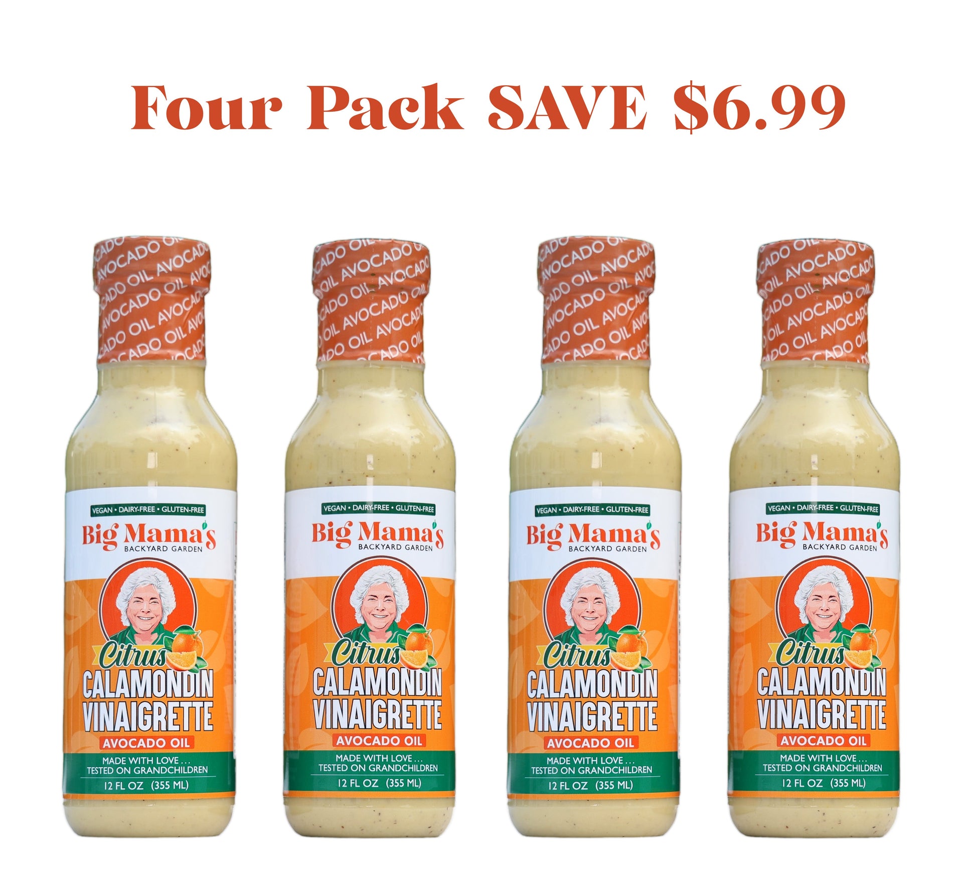 Big Mama’s Calamondin Vinaigrette blends the zesty punch of calamondin citrus with a fresh, vegan, and gluten-free recipe, creating a tangy twist that brings any salad to life. Made with love from backyard garden ingredients in Miami, Florida and free from seed oils, artificial preservatives, or added sugars.