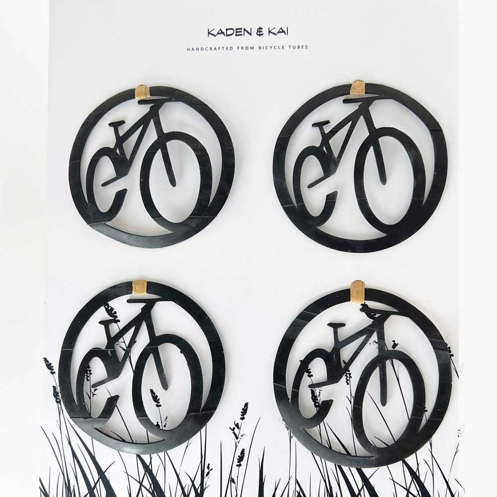 Elevate your tabletop game with KADEN & KAI® Bicycle Coasters — where sustainability meets sleek, modern form. These coasters are featherlight, heat-resistant, and designed to protect with style. Each piece is softly tactile yet ultra-durable — engineered to repel water, resist stains, and stay put without slipping.