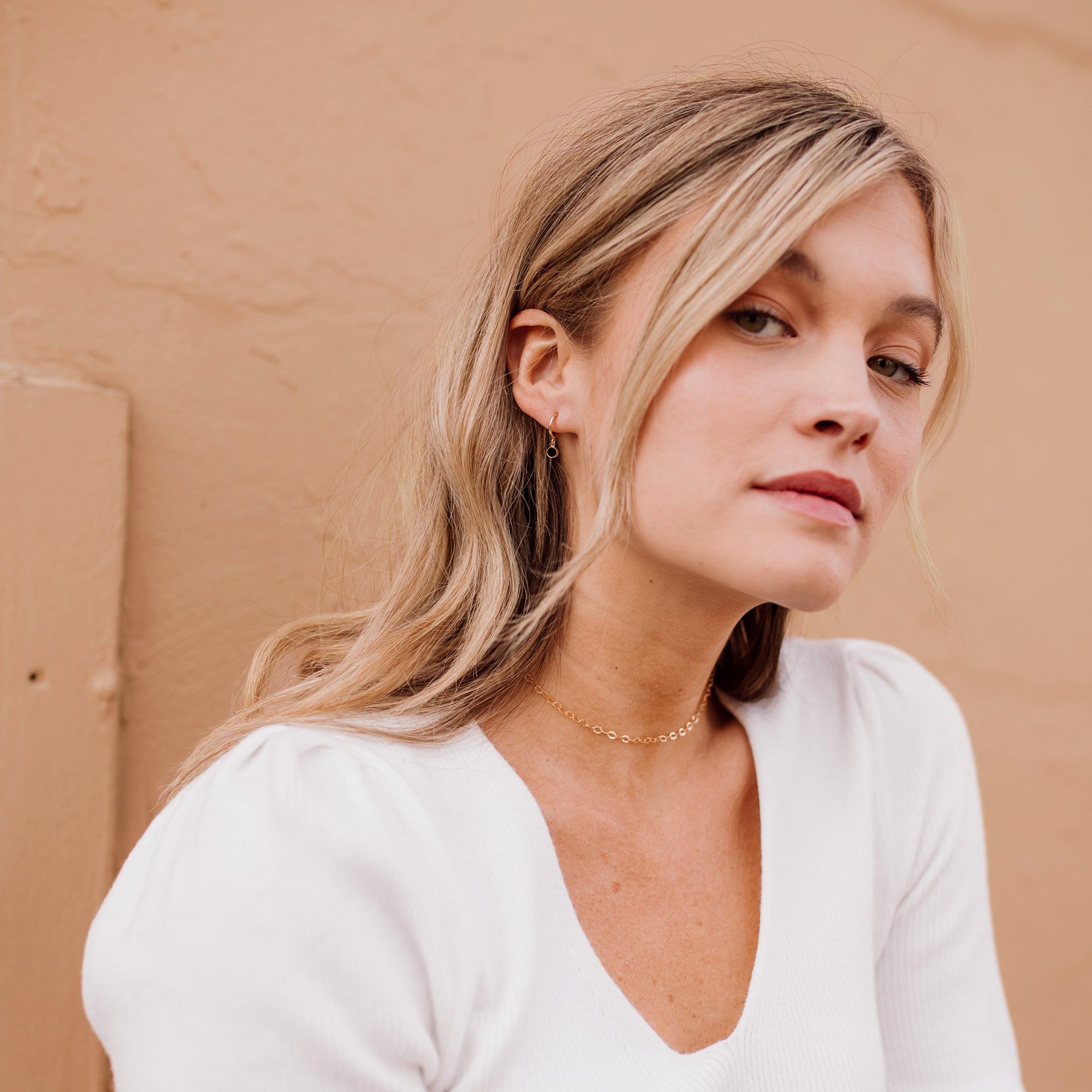 Step into the mysterious with our classic gemstone hoop earrings, featuring alluring black onyx gemstones. Each hoop holds a dangling onyx charm, like a protective talisman swaying gently with every move. Known for its grounding energy, the black onyx adds an enchanting edge to these elegant, handcrafted hoops, making them the perfect balance of minimalism and magic.