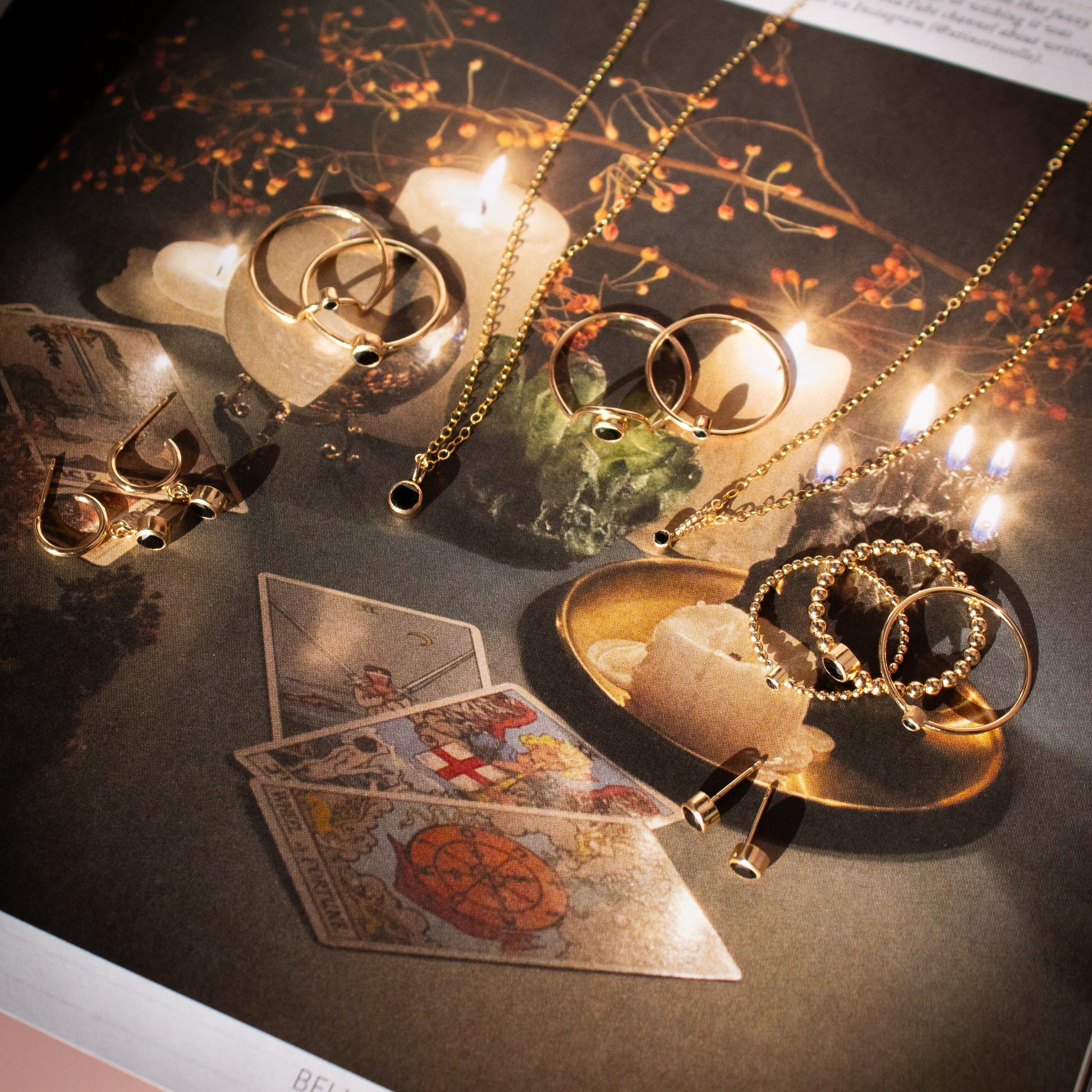 Whether you're dressing up for a night out or embracing a subtle, everyday enchantment, our Black Onyx Hoop Earrings add a spellbinding touch to your look. Light yet powerful, these hoops are made for the modern mystic who walks with both grace and strength.