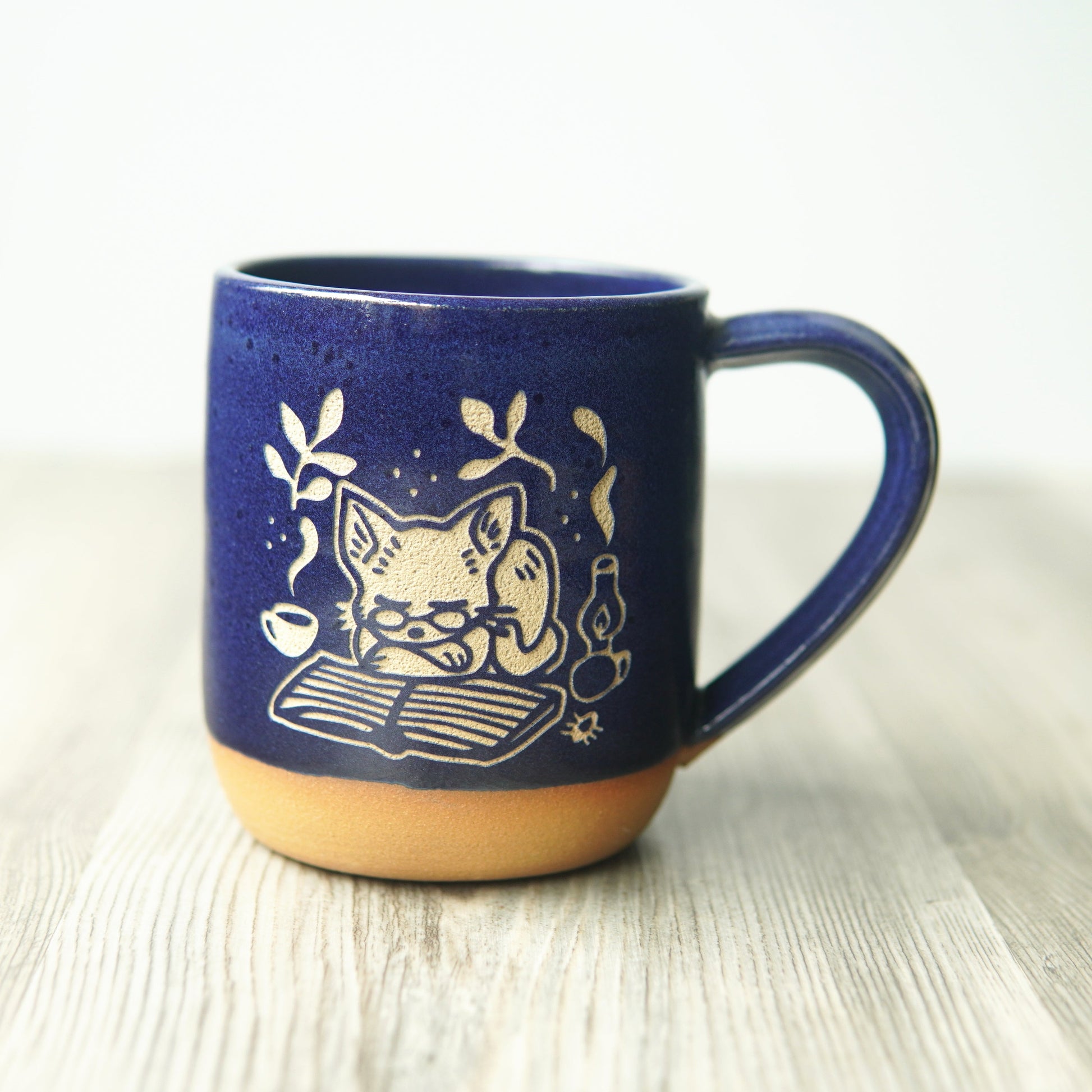 Book Cat Mug, Cozy Farmhouse Style Handmade Pottery