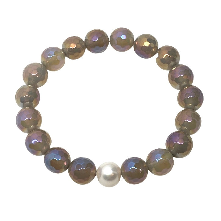 Unicorn Agate beads with freshwater Pearl accent bead.