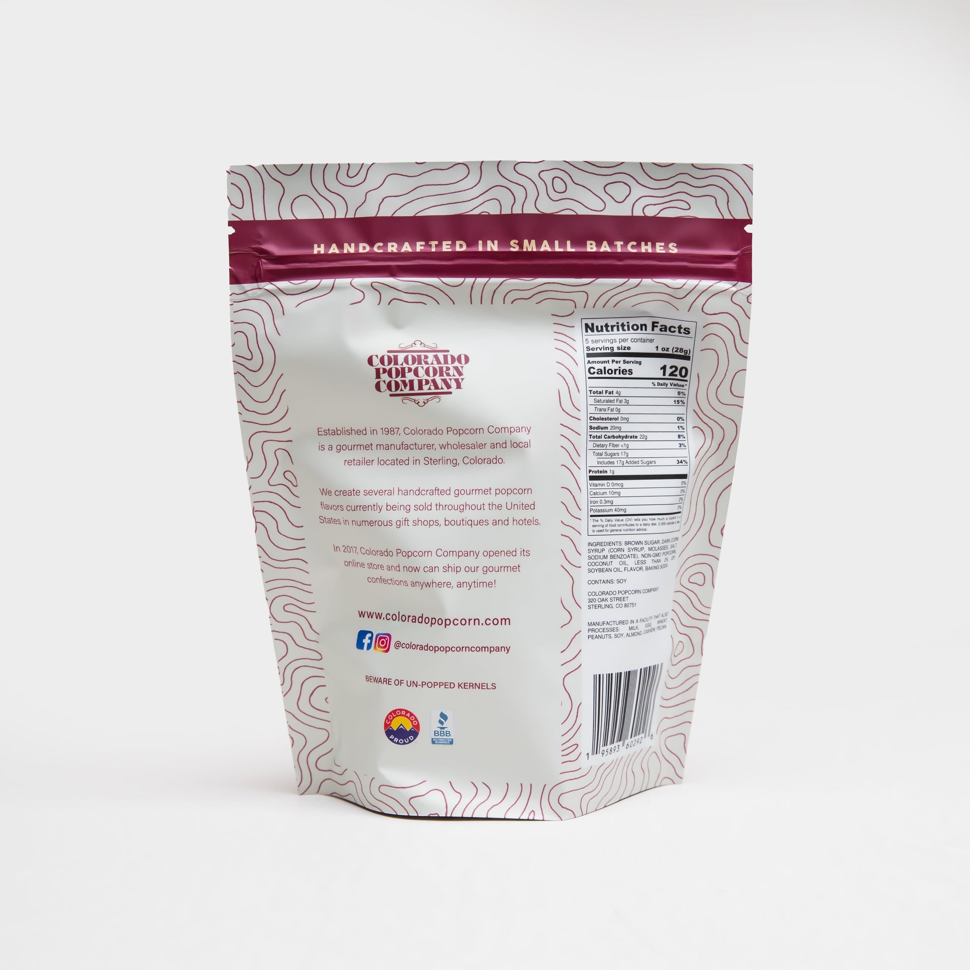 A bag of our classic Caramel Popcorn. We make our own caramel the old-fashioned way, no shortcuts here! Our bestselling popcorn flavor has been a classic at Colorado Popcorn Company since 1987.