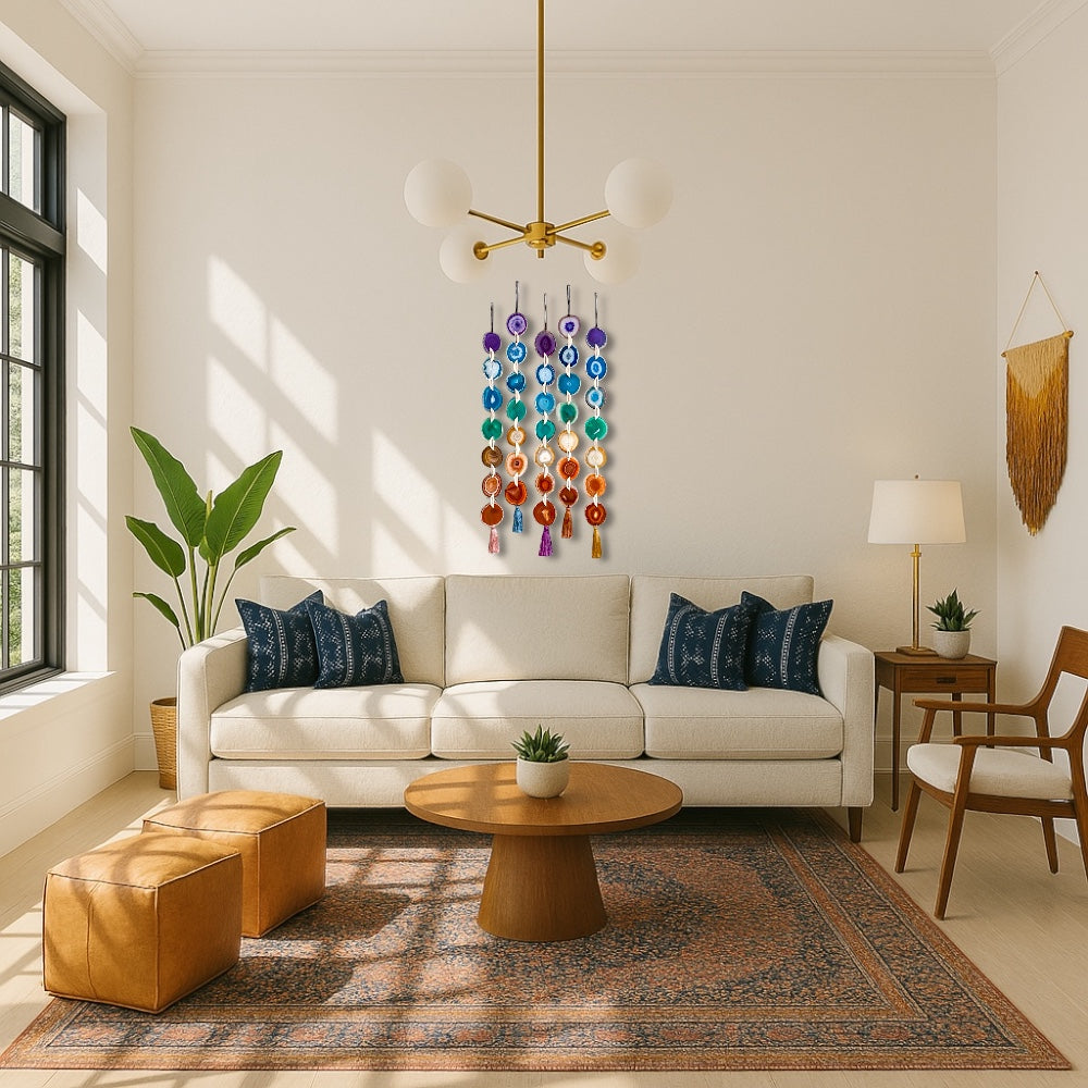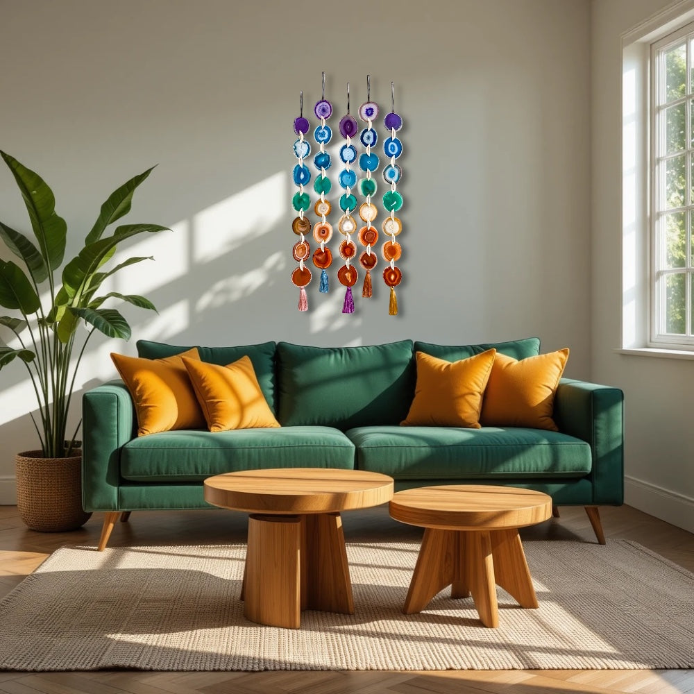 As an interior designer and holistic enthusiast, I understand the profound impact that color and natural elements have on a room's ambiance. The Chakra Harmony Agate Garland was born from a desire to create a piece that not only enhances aesthetic appeal but also promotes well-being. By incorporating the full spectrum of chakra colors, this garland serves as a visual reminder of balance and inner peace, making it a perfect addition to meditation spaces, yoga studios, or any area in need of a harmonious touch.