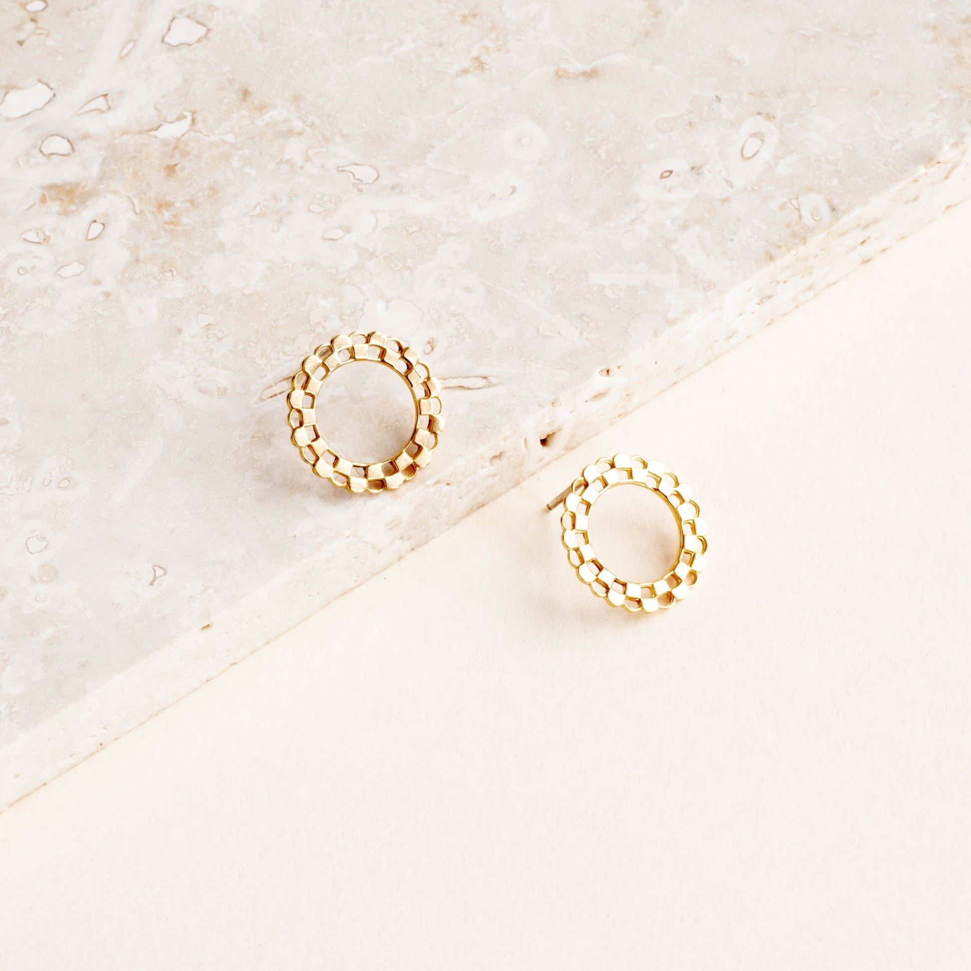 - Vintage brass circles with checkered pattern