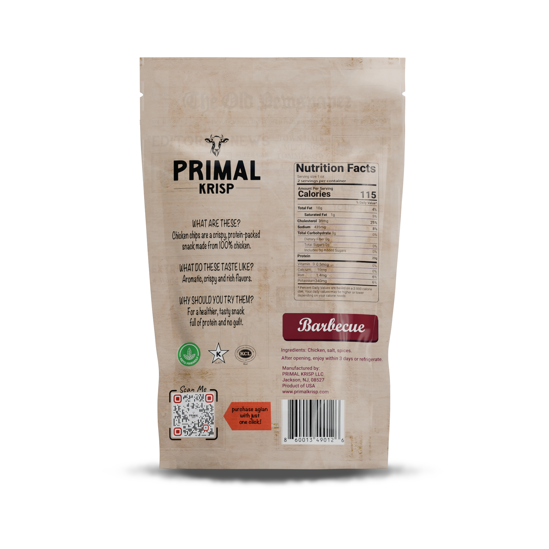 Enjoy the perfect balance of smoky BBQ flavor and crispy texture with our BBQ Chicken Chips. Made from real chicken with no additives, sugar, or marinades, these chips offer a clean, high-protein snack for any occasion.