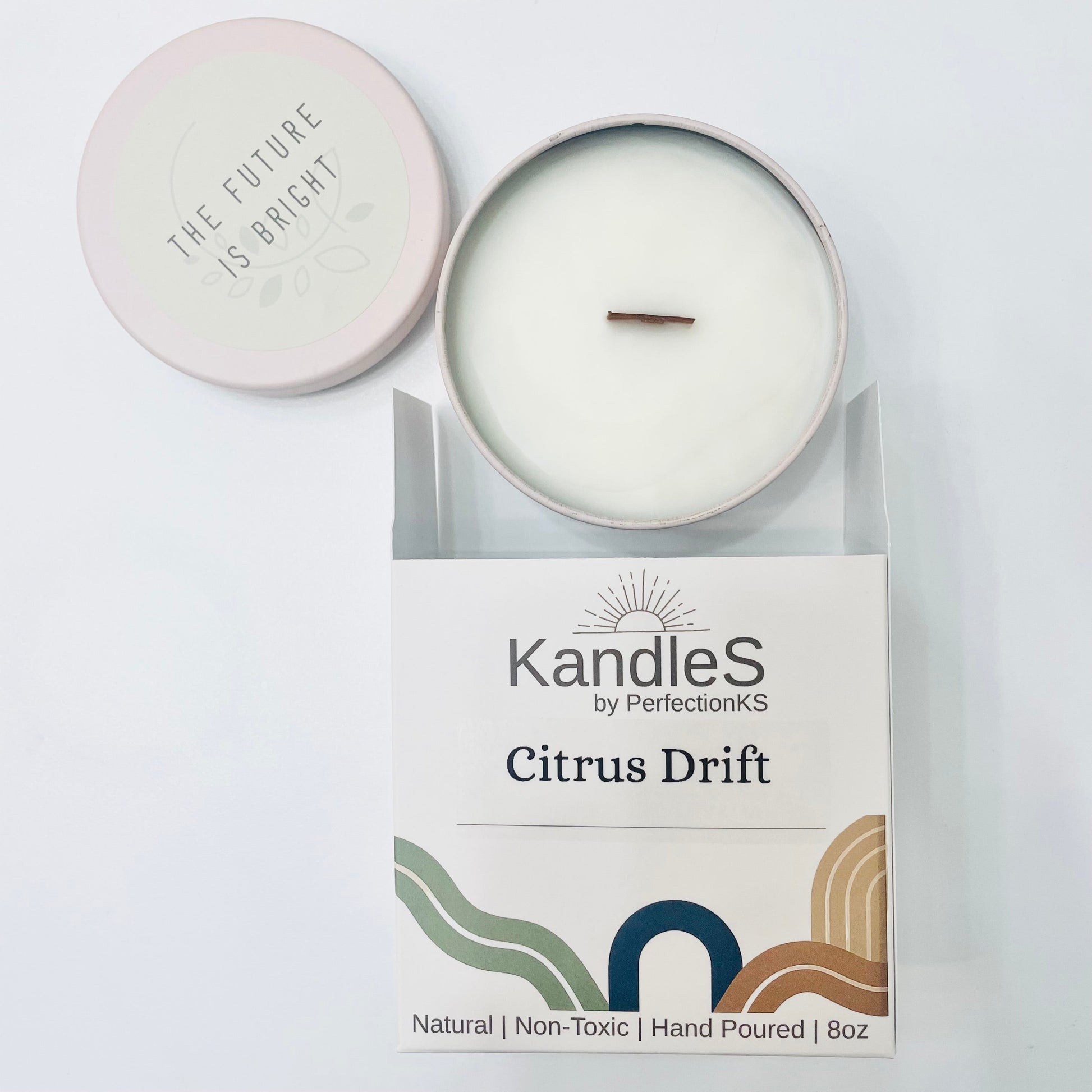 Elevate your everyday environment with Citrus Drift, a luxurious candle that invigorates your senses and brightens any space.