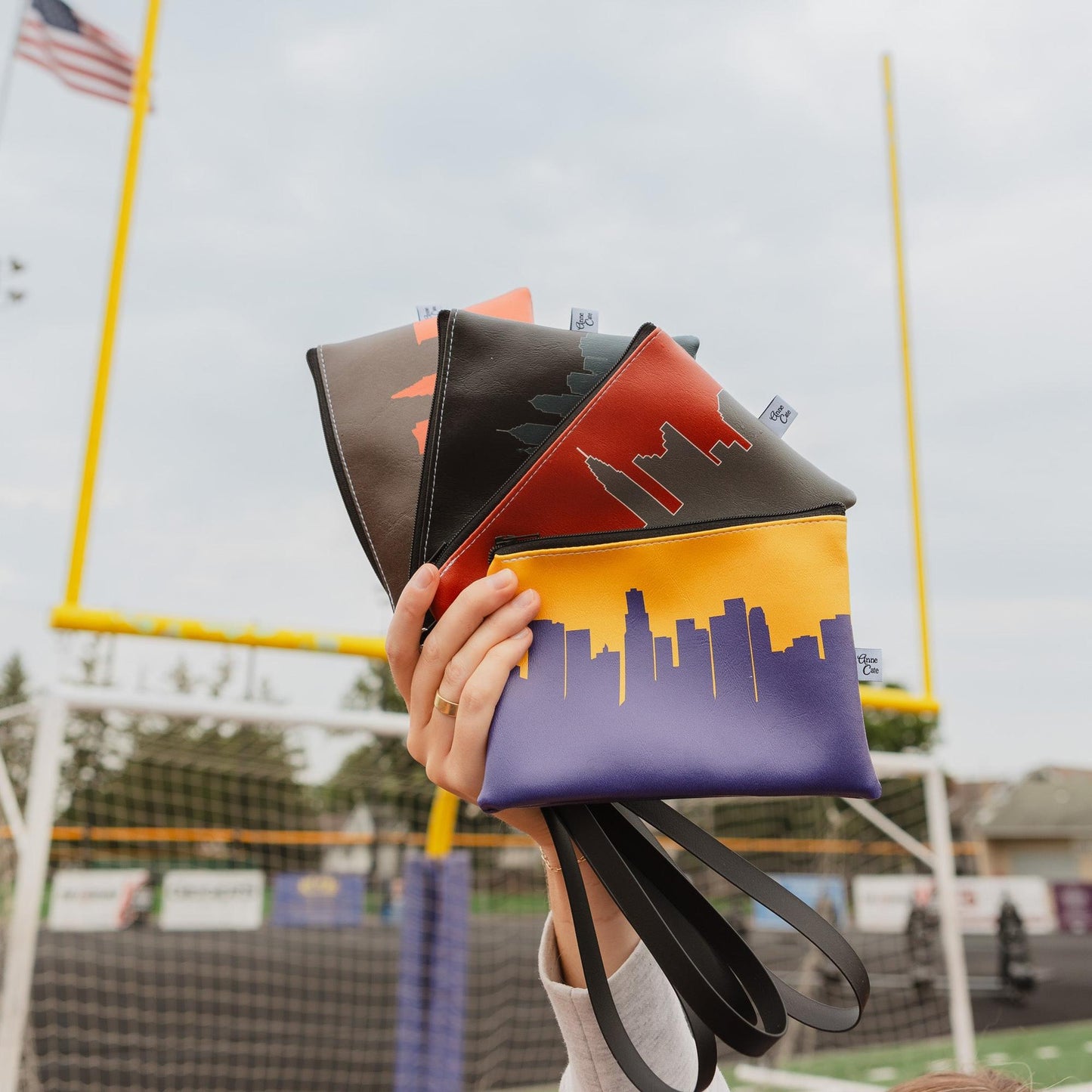 The original game day bag by Anne Cate, designed specifically for the STADIUM! This clutch complies with NFL, NCAA, and event venue regulations and comfortably holds your keys, essentials, and cash—leaving you free to cheer for your team as they score that touchdown!
