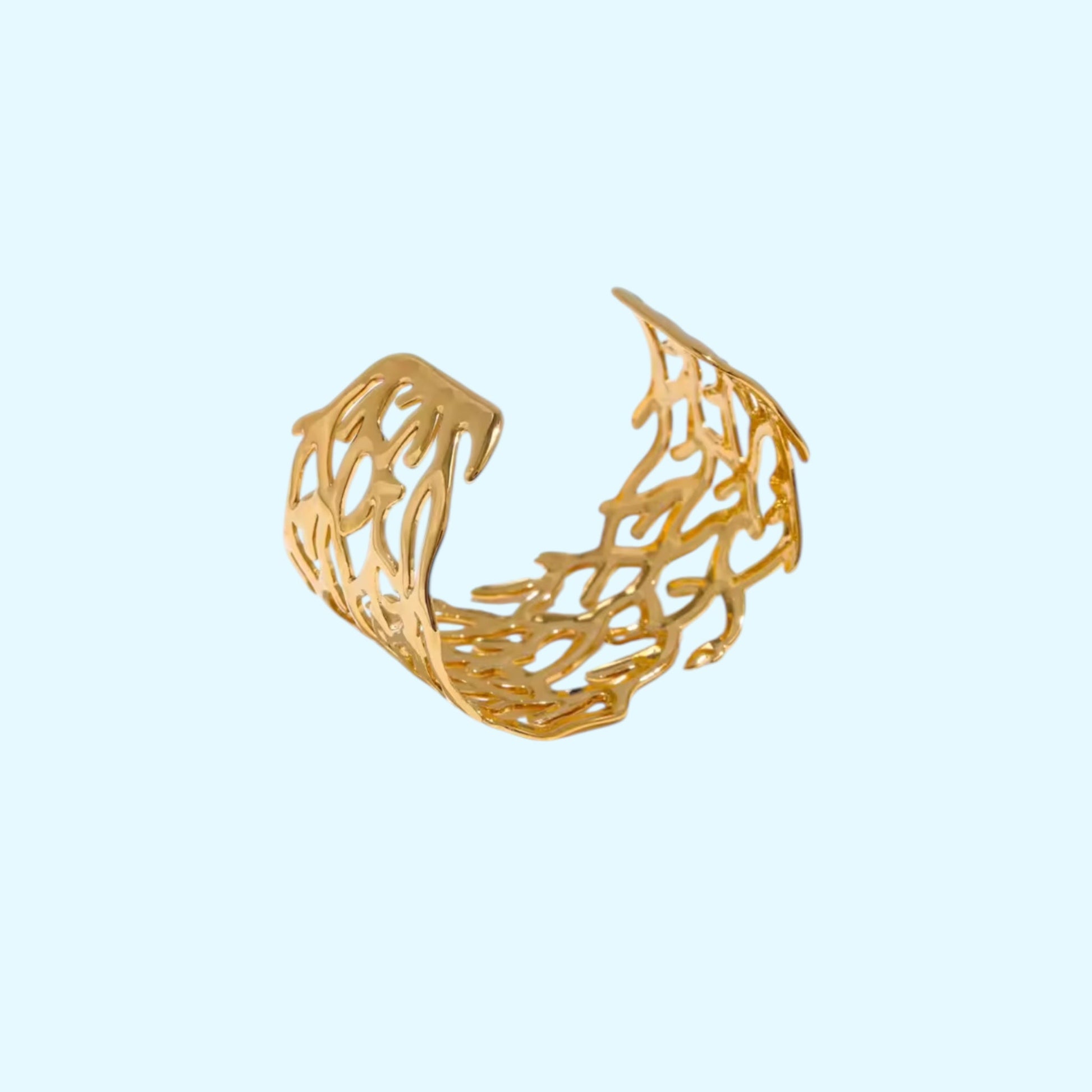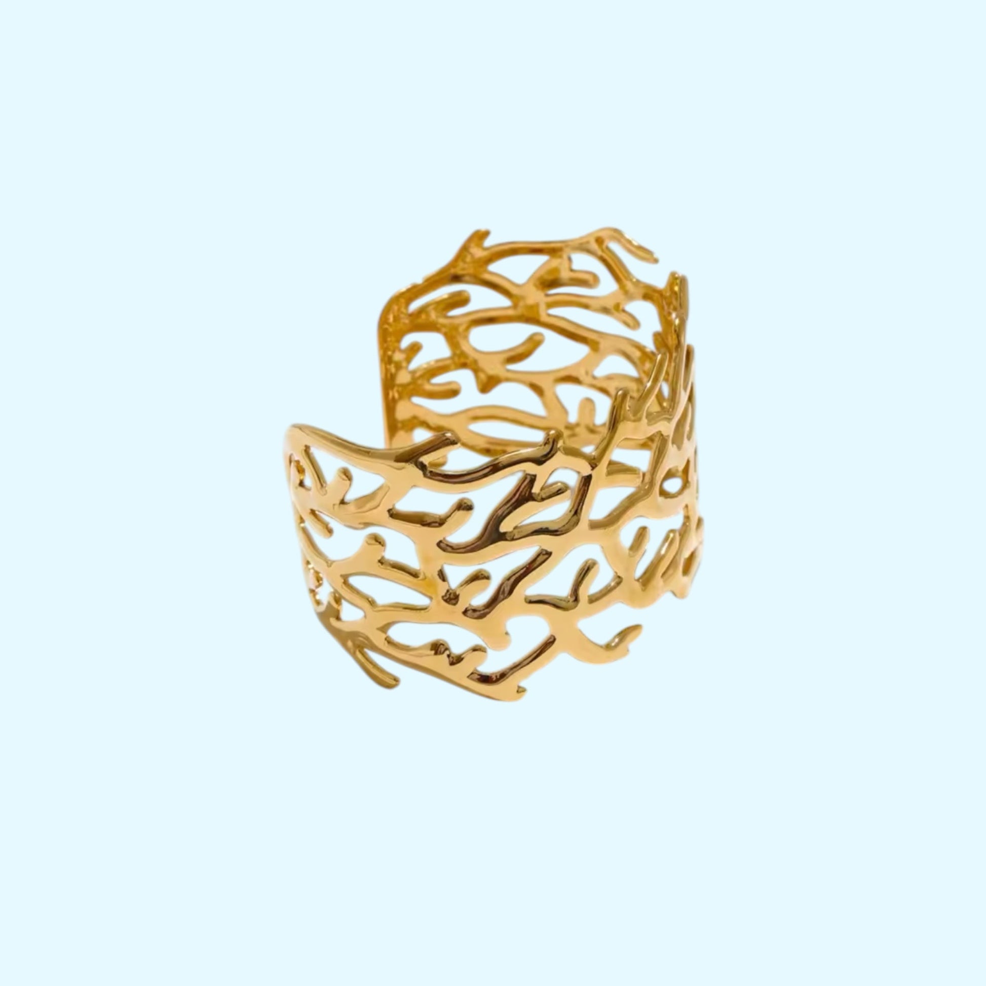 Inspired by the beauty of ocean coral, this bold gold cuff is your new must-have statement piece—designed to transport you from sun-soaked beach days to golden hour date nights. Crafted in PVD real gold plated over stainless steel, it’s waterproof, anti-tarnish, and made to last wherever the tide takes you.