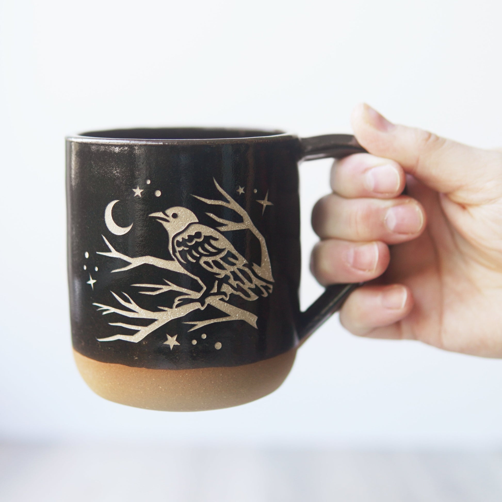 Crow Mug, Farmhouse Style Handmade Pottery