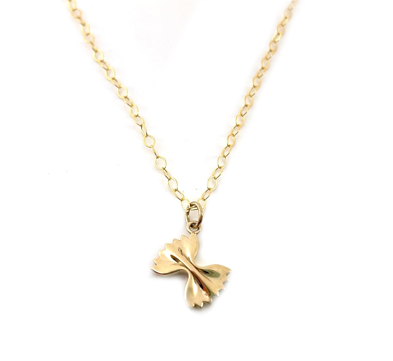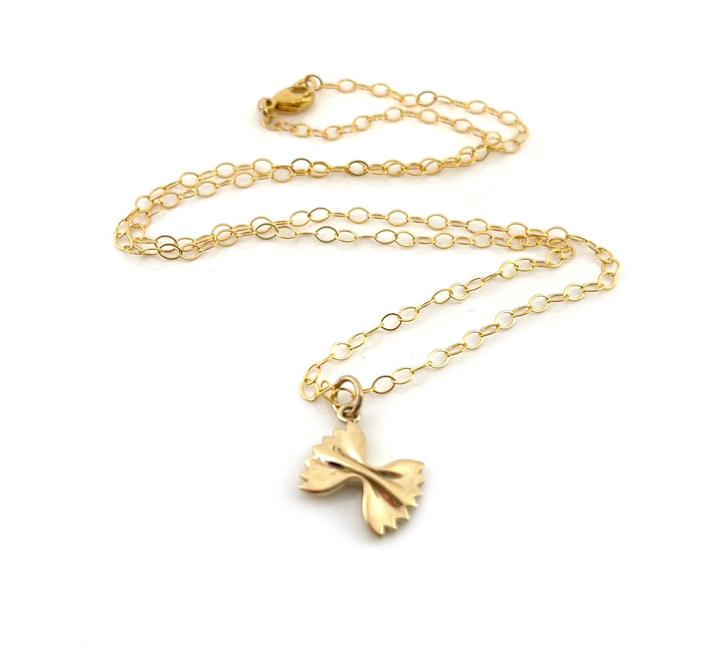 Dainty Bowtie Pasta Charm Necklace – 14k Gold Filled | Handmade Foodie Gift
