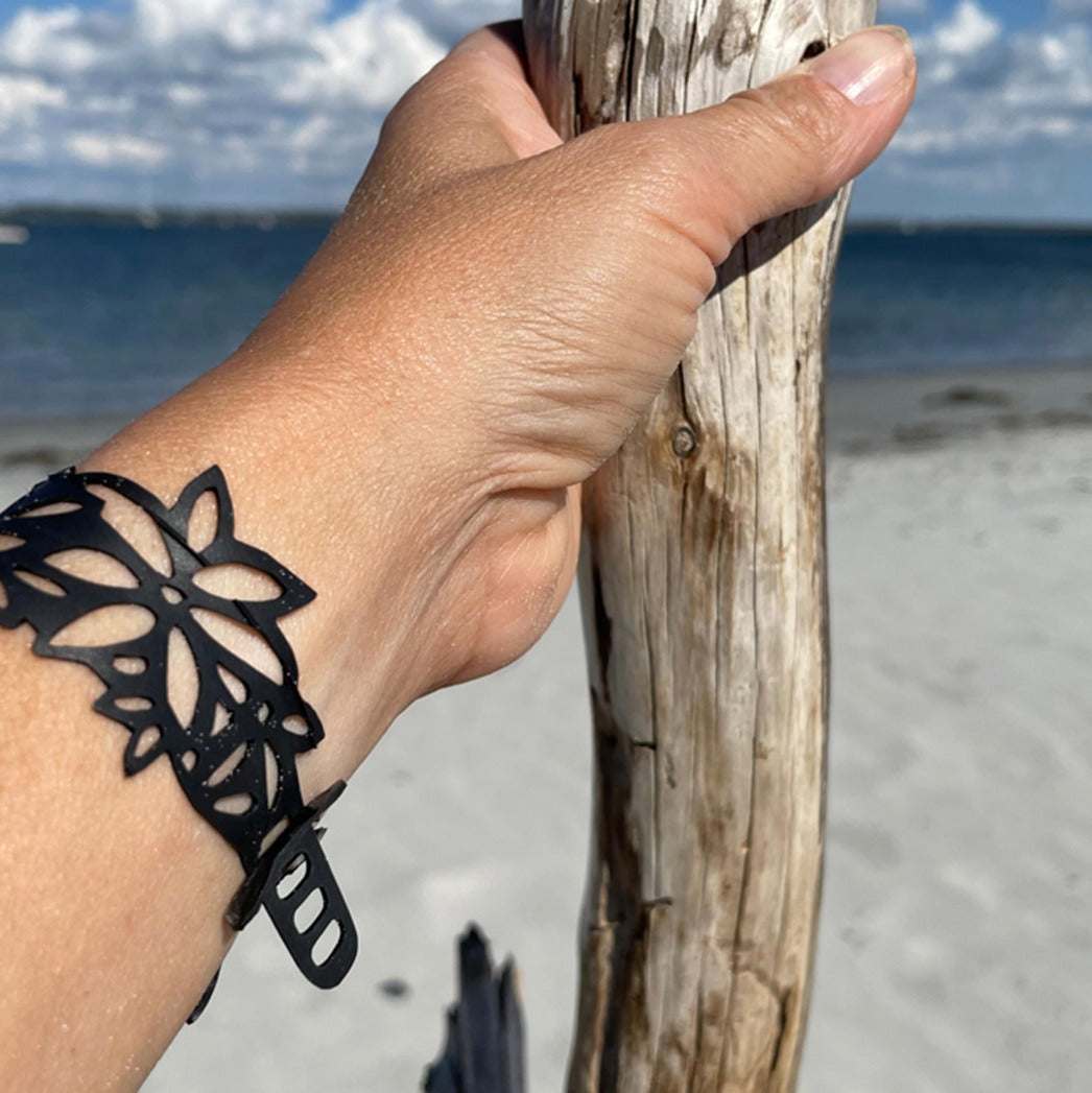 The Kaden & Kai Daisy Wrap Bracelet is a delightful fusion of playfulness, femininity, and charm. Handcrafted from repurposed bicycle tubes, this unique piece is as lightweight and comfortable as it is durable. Since its debut in 2020, the Daisy Bracelet has remained a beloved favorite—a true best-seller that continues to charm and inspire people of all styles and backgrounds.