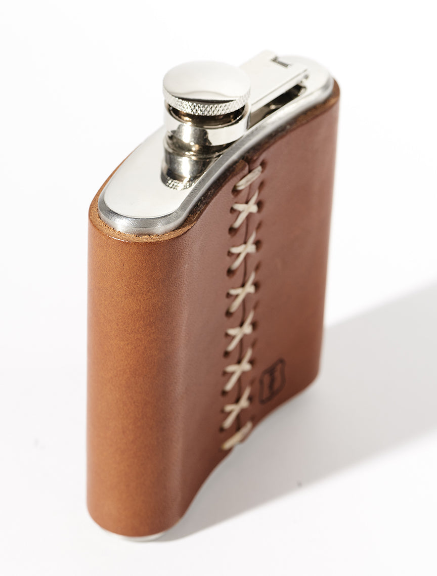 The leather is cemented to the stainless steel flask for durability, and sealed with a water resistant sealer so that it can be carefully rinsed out.
