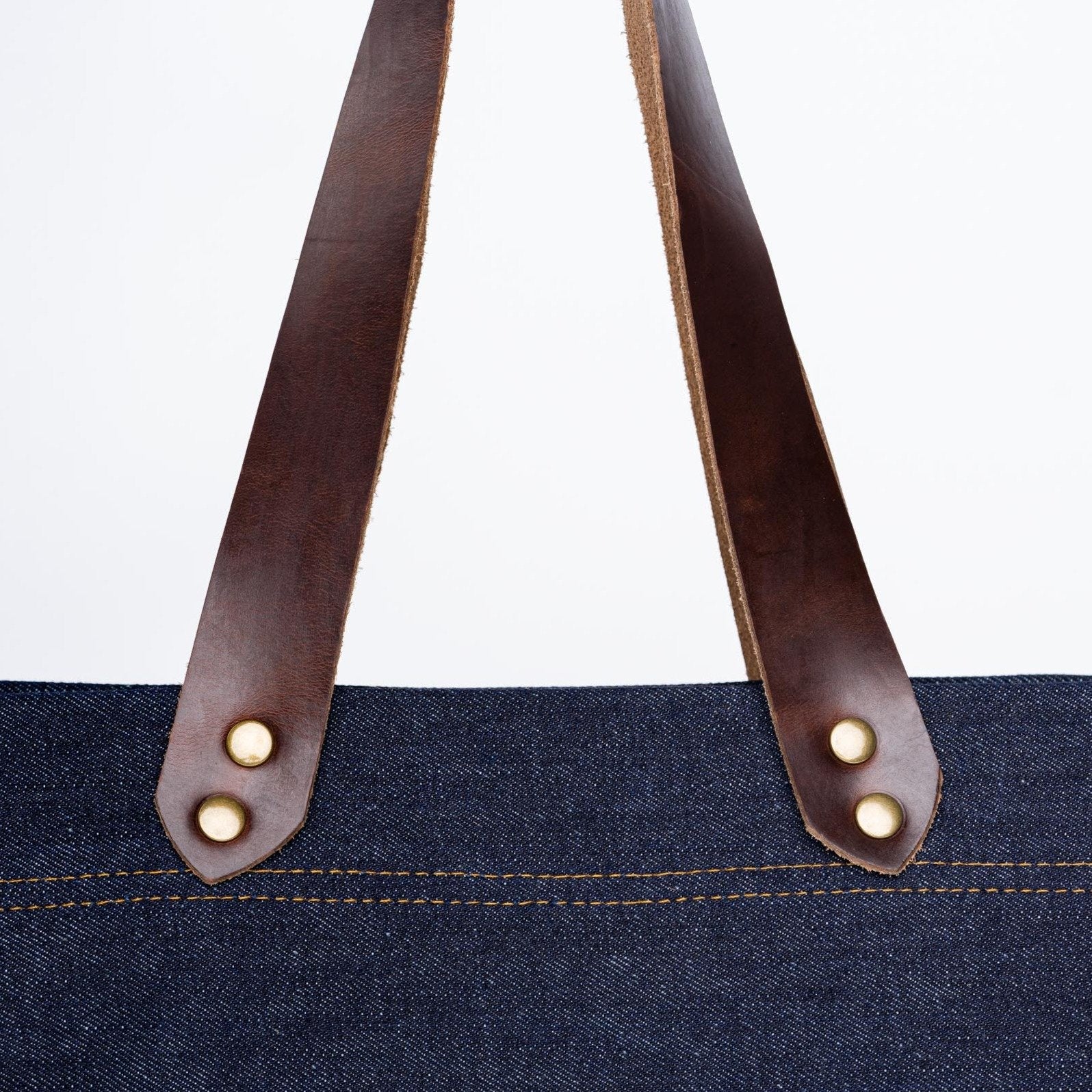 Made with upcycled denim and leather that are too small of pieces for jeans or belts.
