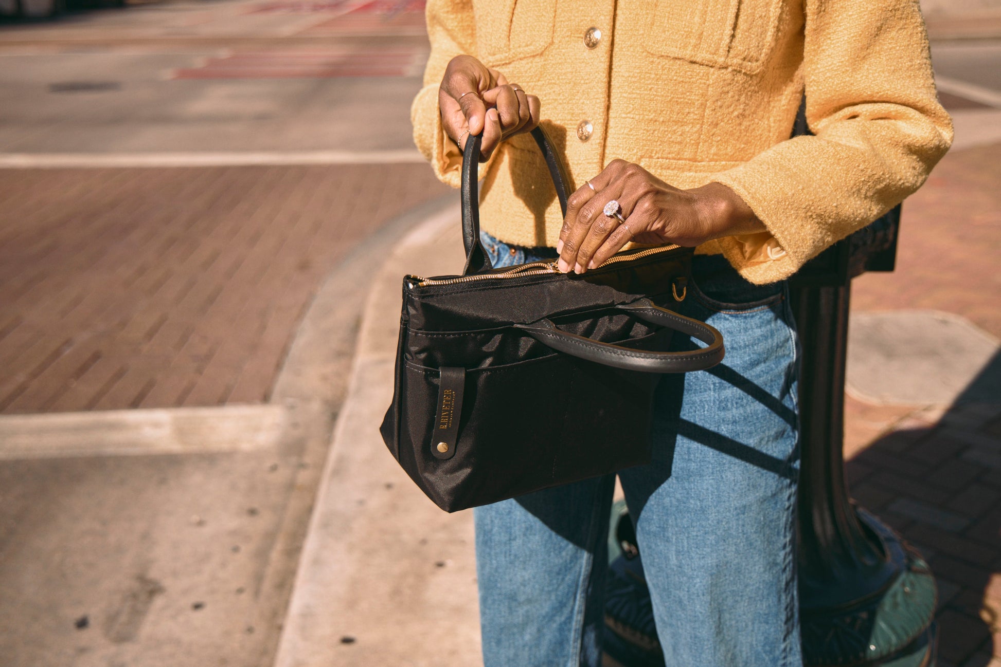 Slightly more compact than its medium counterpart, the small tote offers versatility and ease. It's the perfect size for those who prefer to carry just the essentials but still require a bit of extra space.