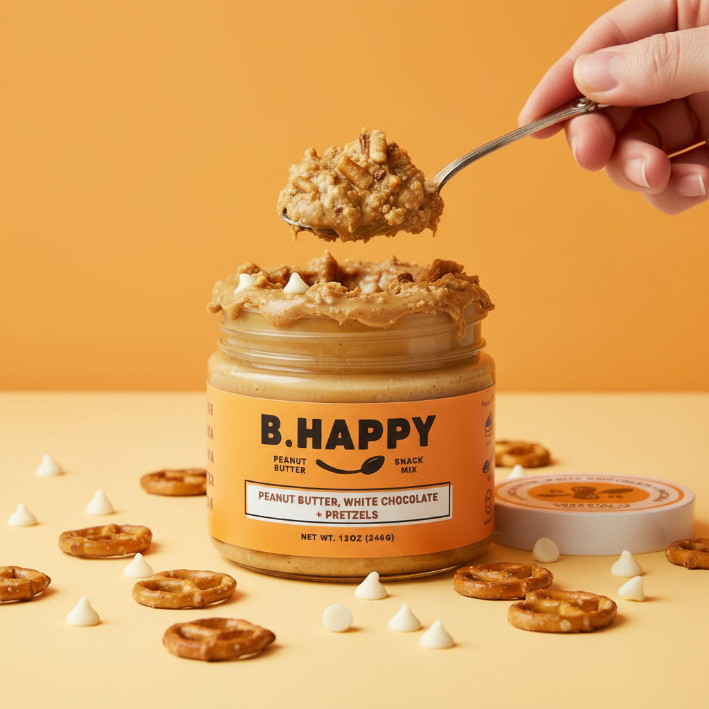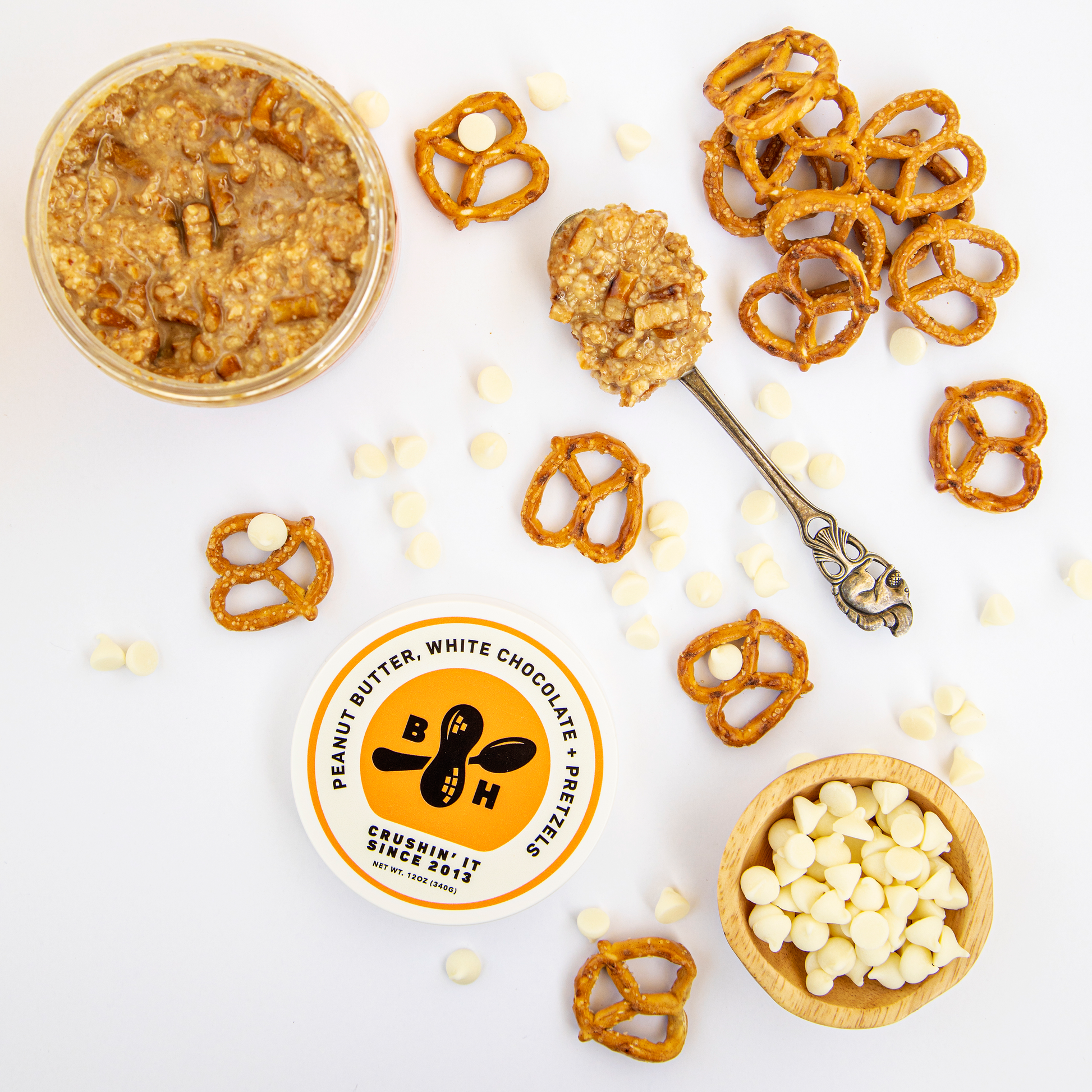 Close your eyes. Imagine crunchy pretzel pieces swimming with silky smooth white chocolate chips in honey roasted peanut butter. Yep, we did that.
