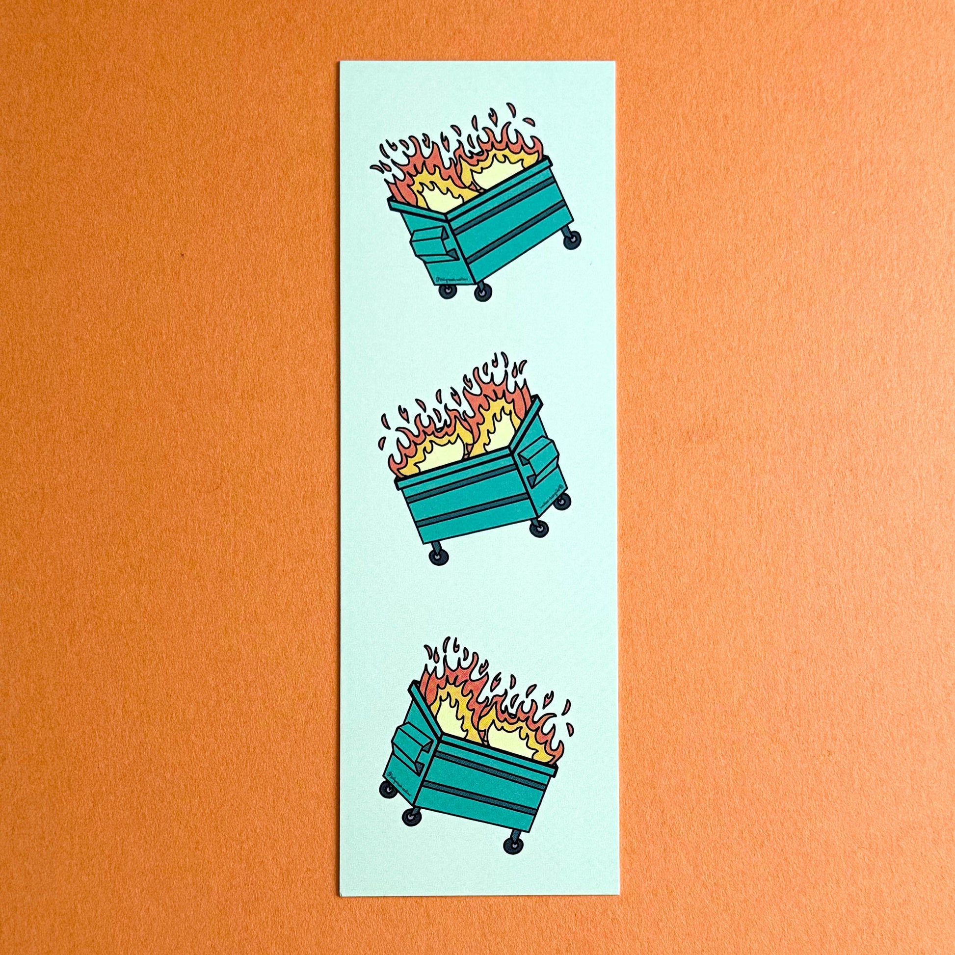 This dumpster fire bookmark is sure to light any page! It's perfect for keeping your place in a book, magazine, or even your favorite comic. Never lose your spot again.