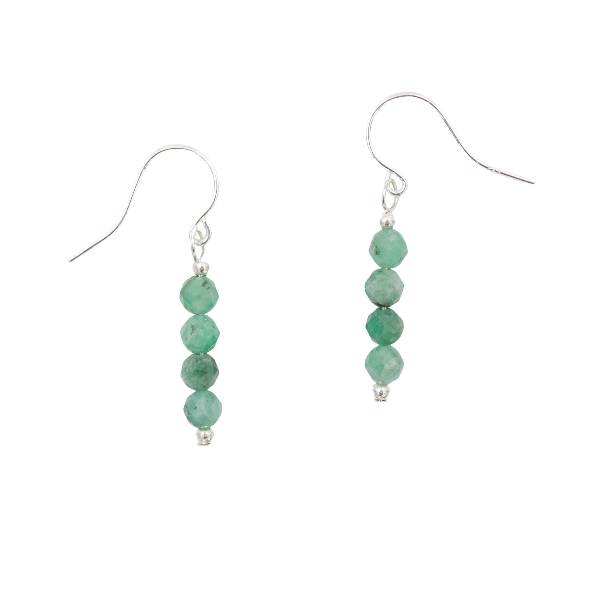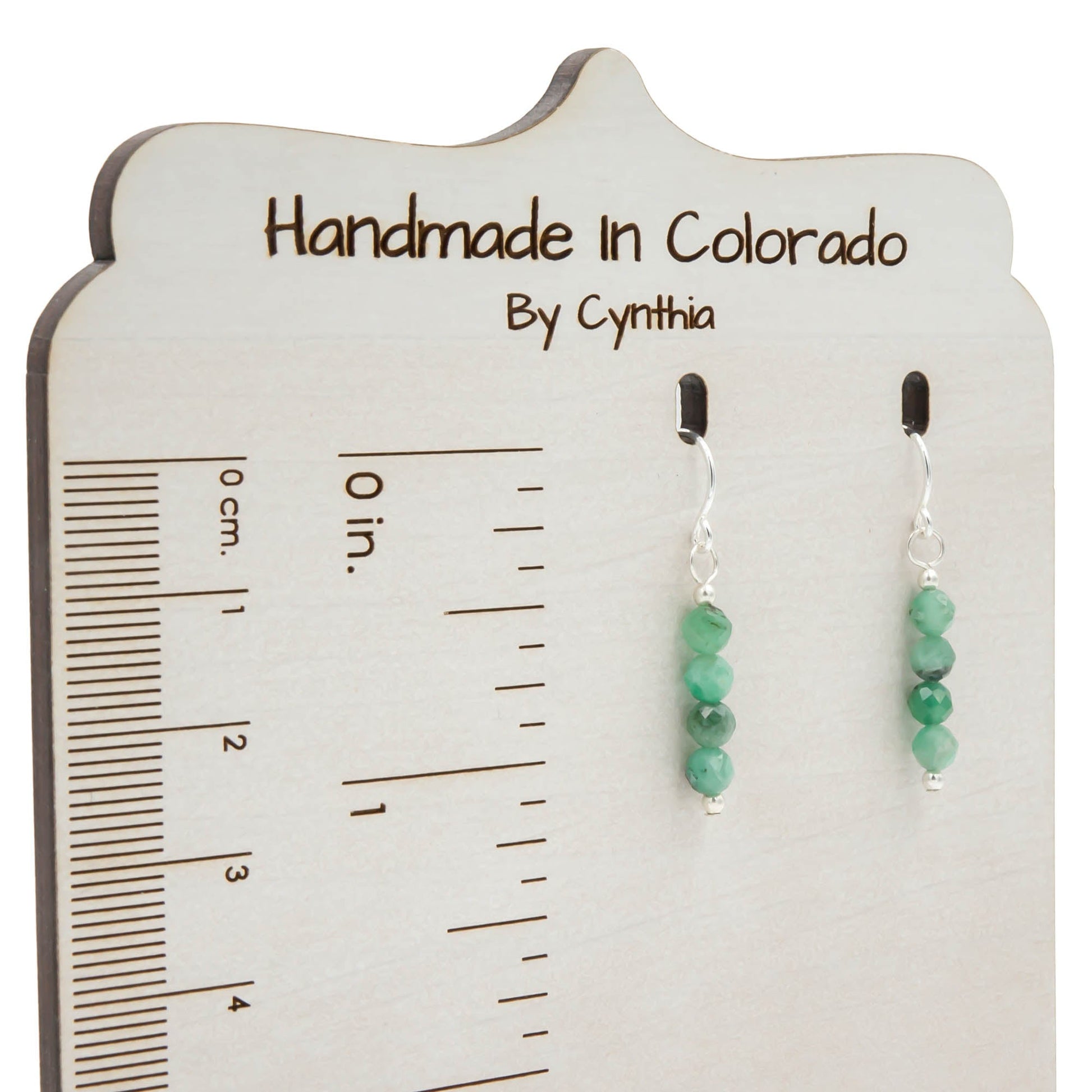 Beautifully faceted raw emeralds twinkle and sparkle. Accented with petite 925 Sterling Silver beads, these fresh green earrings remind you of summer grasses grown wild.