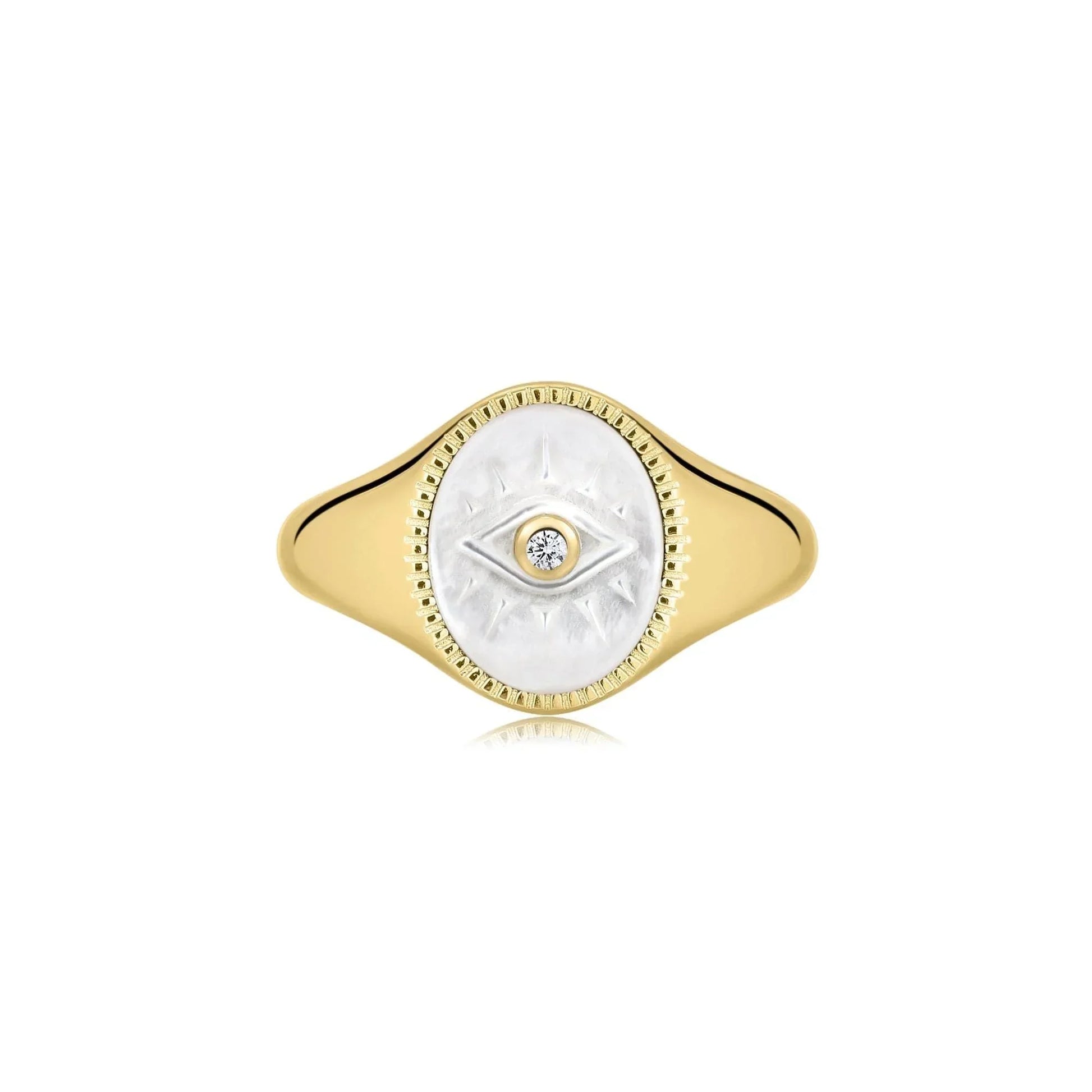 Evil Eye Signet Ring With Mop & CZ Center Stone