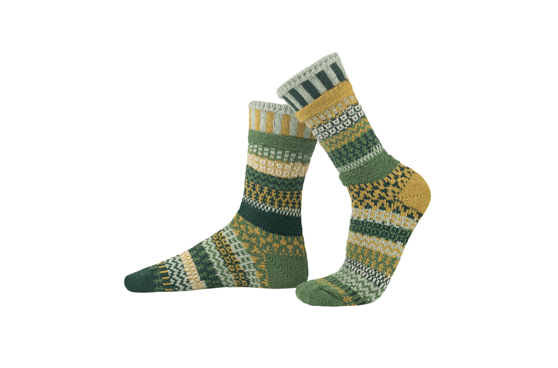 Colors in this sock: Moss, Bottle Green, Verde, Bone, and Sky.