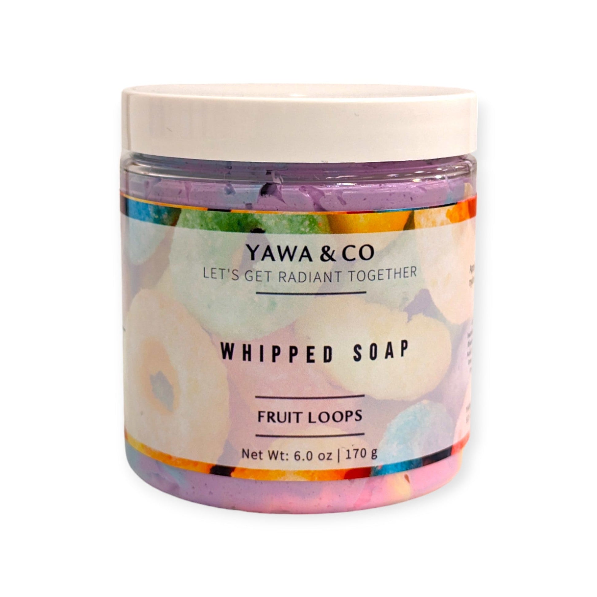 Transform your daily skincare routine with Yawa & Co's Fruit Loops Whipped Soap. Soft, fluffy, and bursting with vibrant colors, this whipped bath soap brings magic to your shower! Our whipped soap is made with moisturizing shea butter and natural oils to nourish and hydrate your skin, leaving it smooth and silky. The playful swirl of colors and sweet scent make this soap perfect for all ages. Whether you’re treating yourself or looking for a fun gift, the Fruit Loops Whipped Soap is a luxurious and joyful addition to any skincare collection.