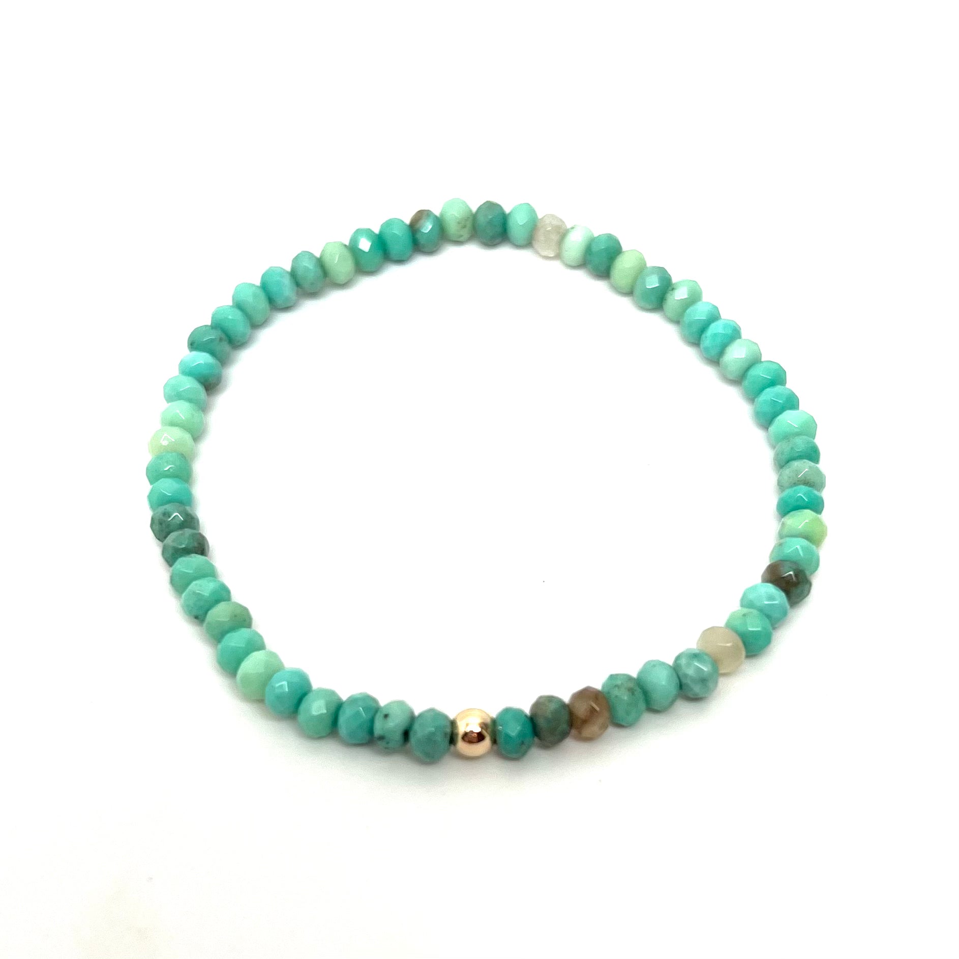 3mm gemstone on stretch cording with 14k gold filled accent bead