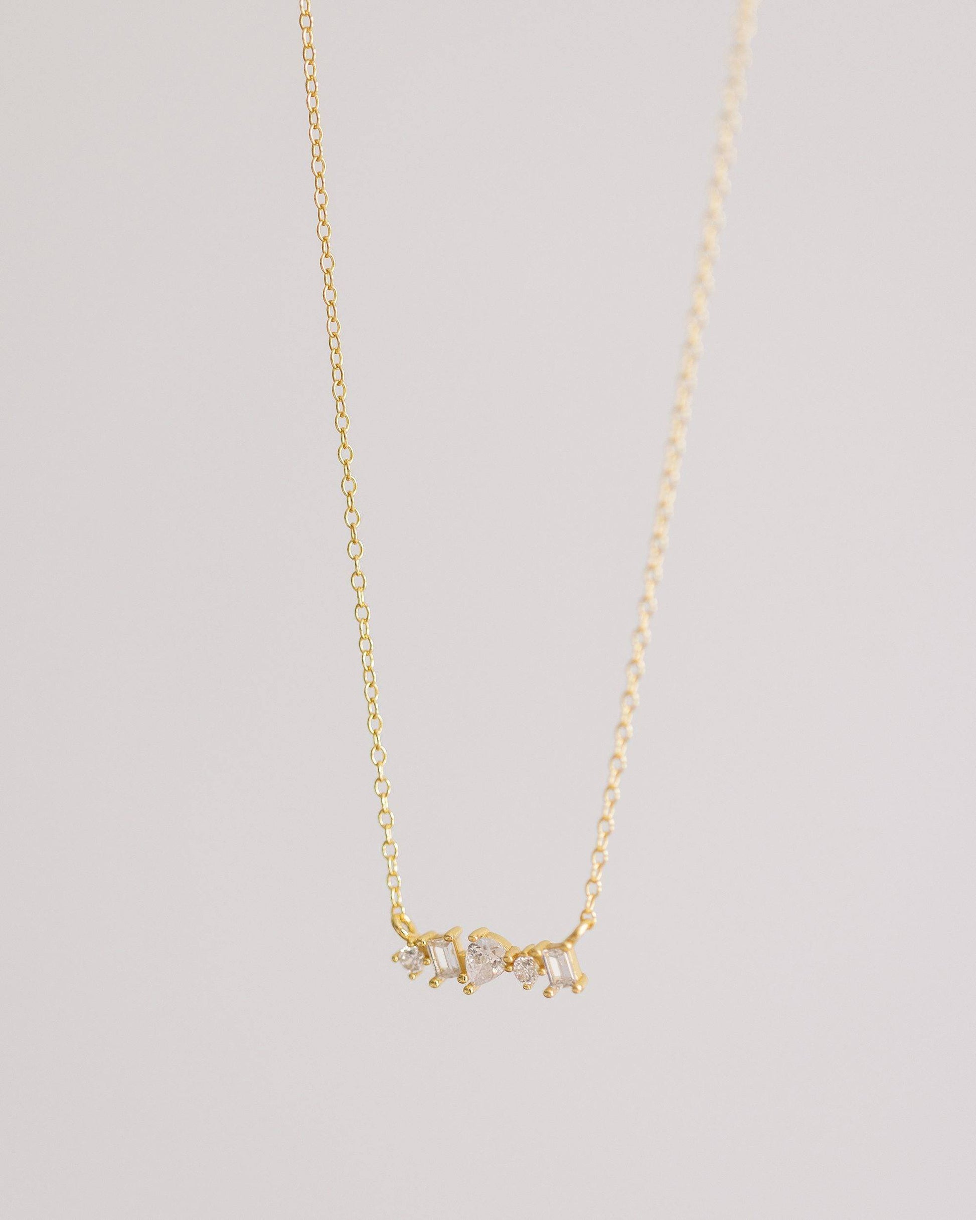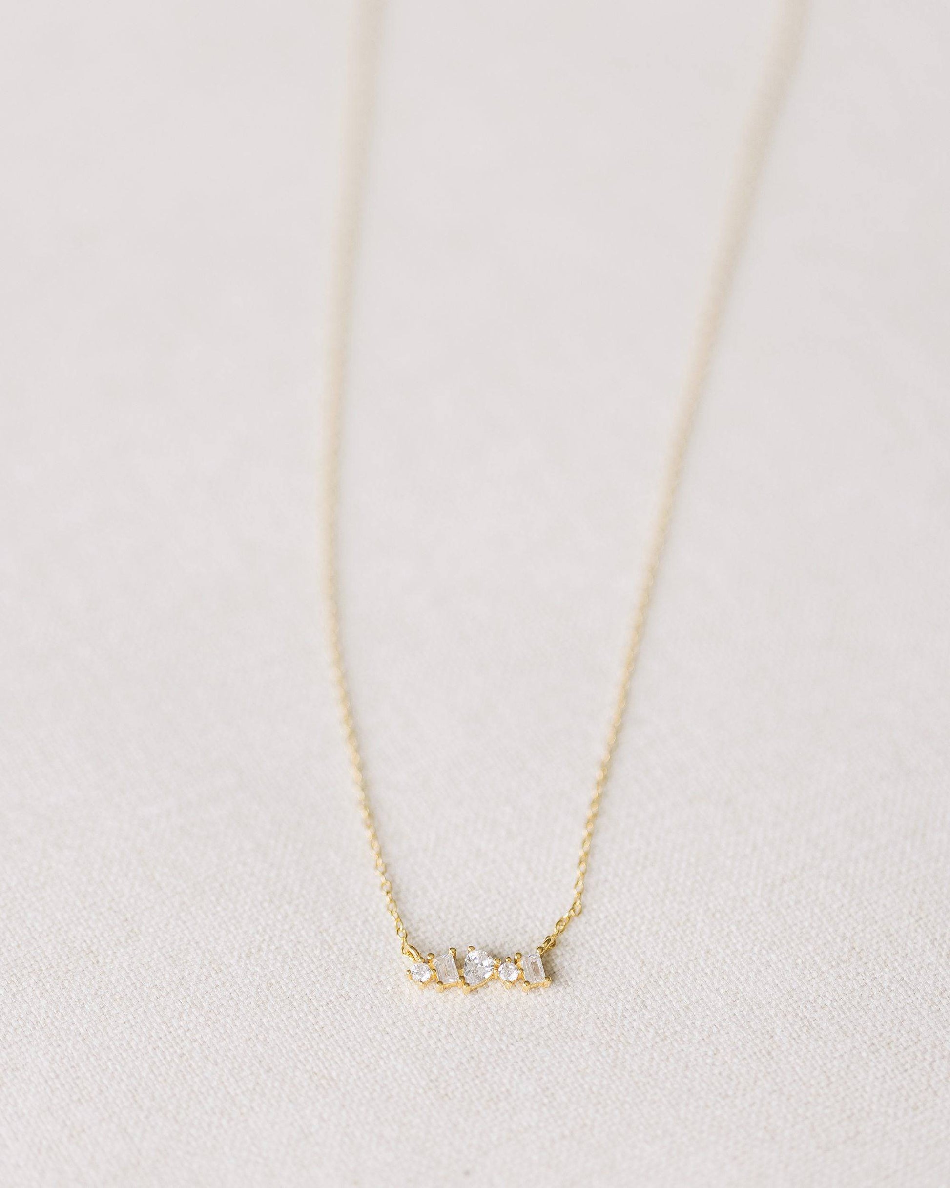 Glow with grace in this beautiful Gold Crystal Bar Necklace. Crafted with gold vermeil, it is adorned with a row of crystals. Perfect for any special occasion, this necklace will add a touch of sparkle to your look.
