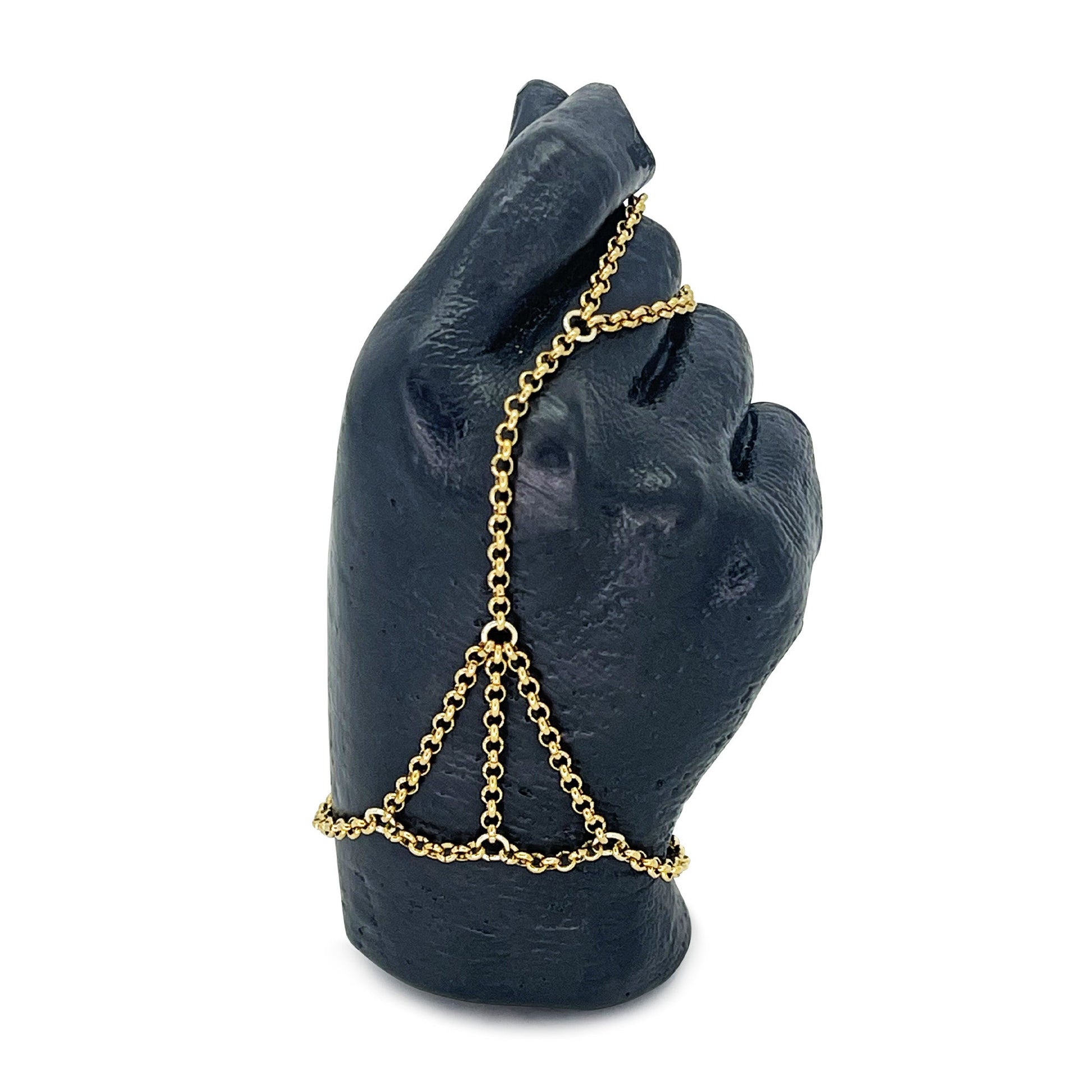 Handcrafted from 14k gold-plated brass, this lightweight hand chain adds a refined, elegant touch to your everyday look.