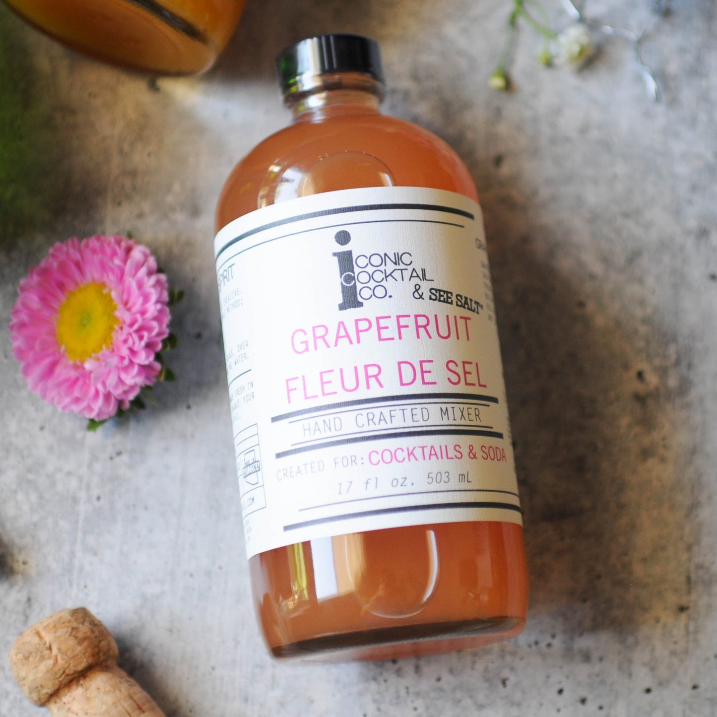 Grapefruit Fleur de Sel is inspired by citrus season. Using French fleur de sel from local business SEE SALT and Rio Red grapefruit, this mixer shines with any spirit and makes the perfect Paloma or citrus soda.