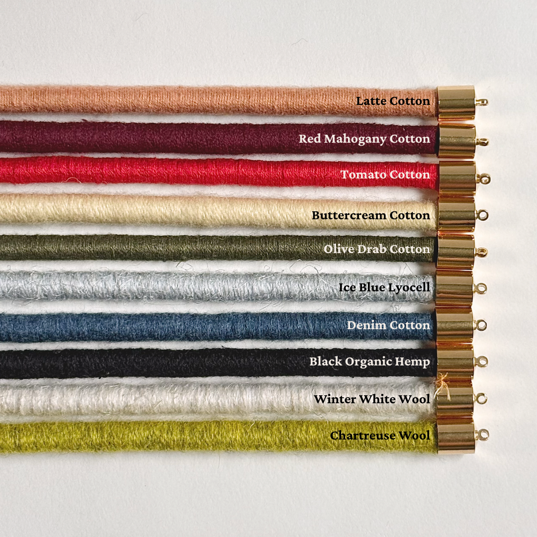 - 2, 2" cording hand-wrapped in the yarn of your choice