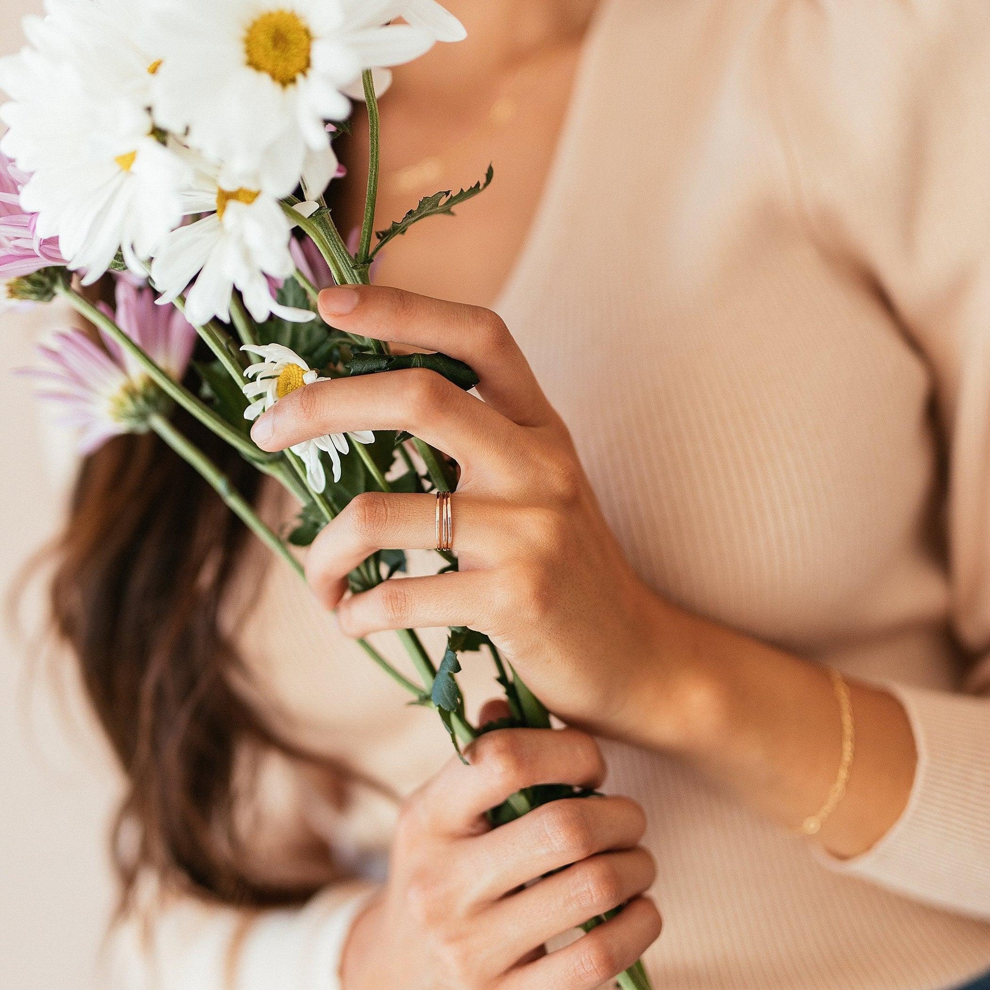 An absolute must have for any stacking set, but also beautifully minimalistic worn alone! These lightly hammered bands are just what you've been looking for.