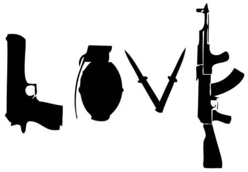 A clean laser-engraved Banksy Love Weapons Graffiti Art in real Mahogany.