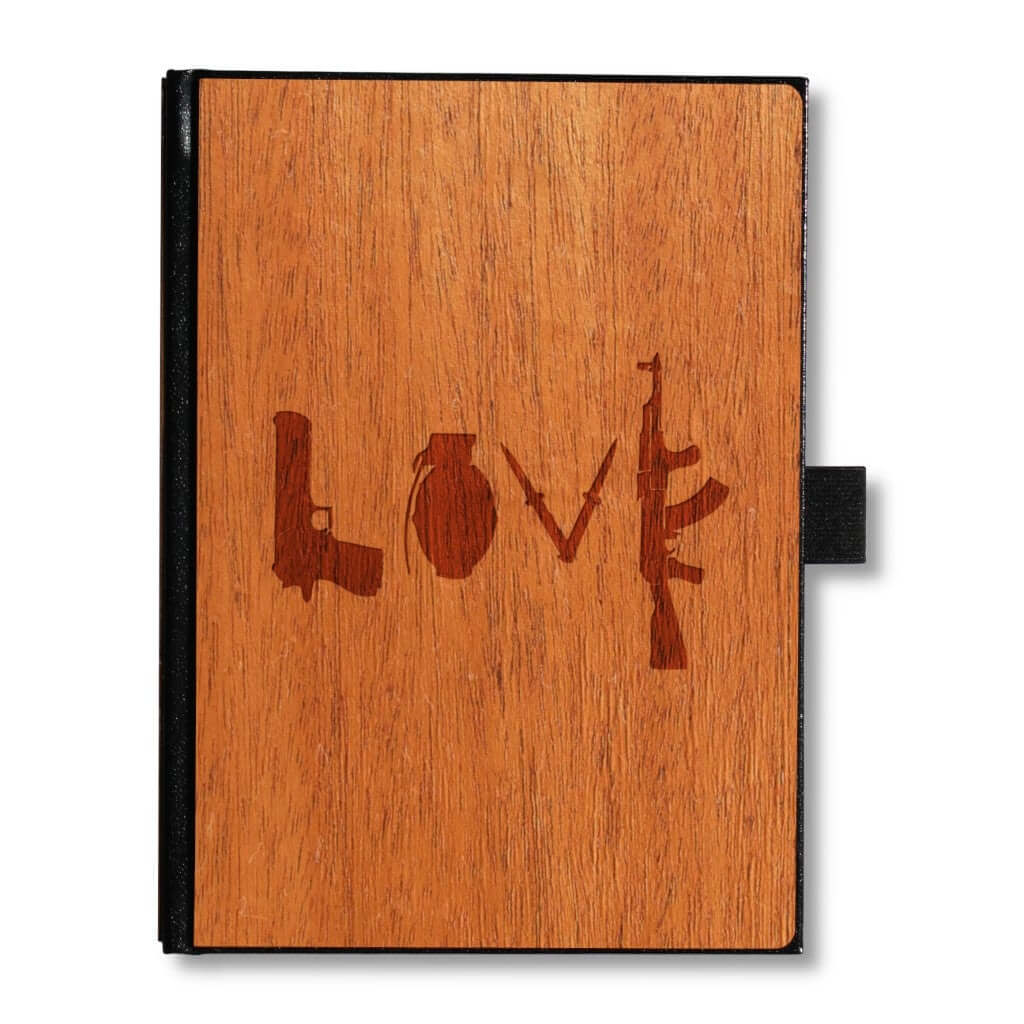 Handcrafted Wood Journal / Planner (Banksy Love Weapons in Mahogany)