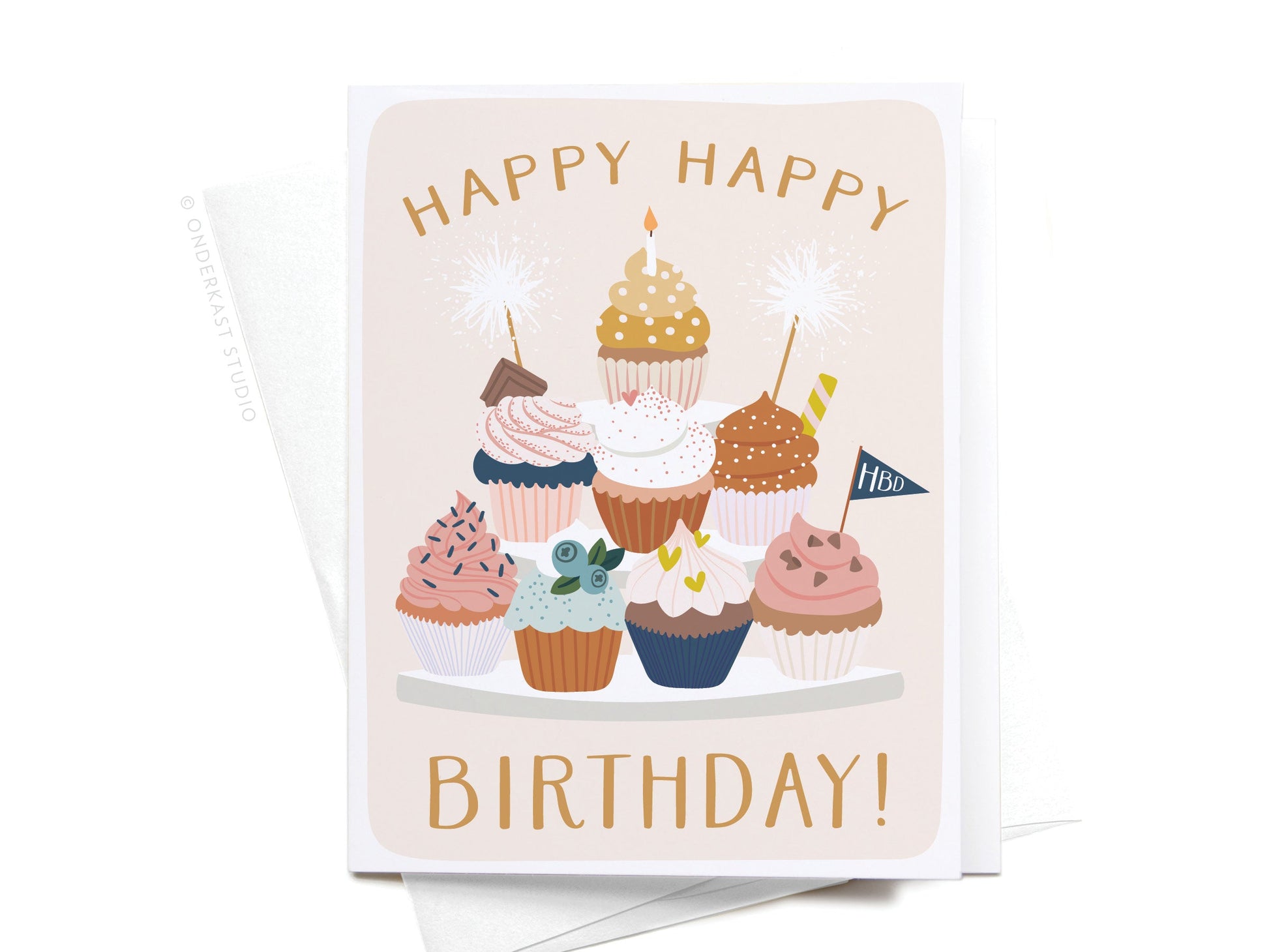 Happy Happy Birthday! Cupcake Stand Greeting Card