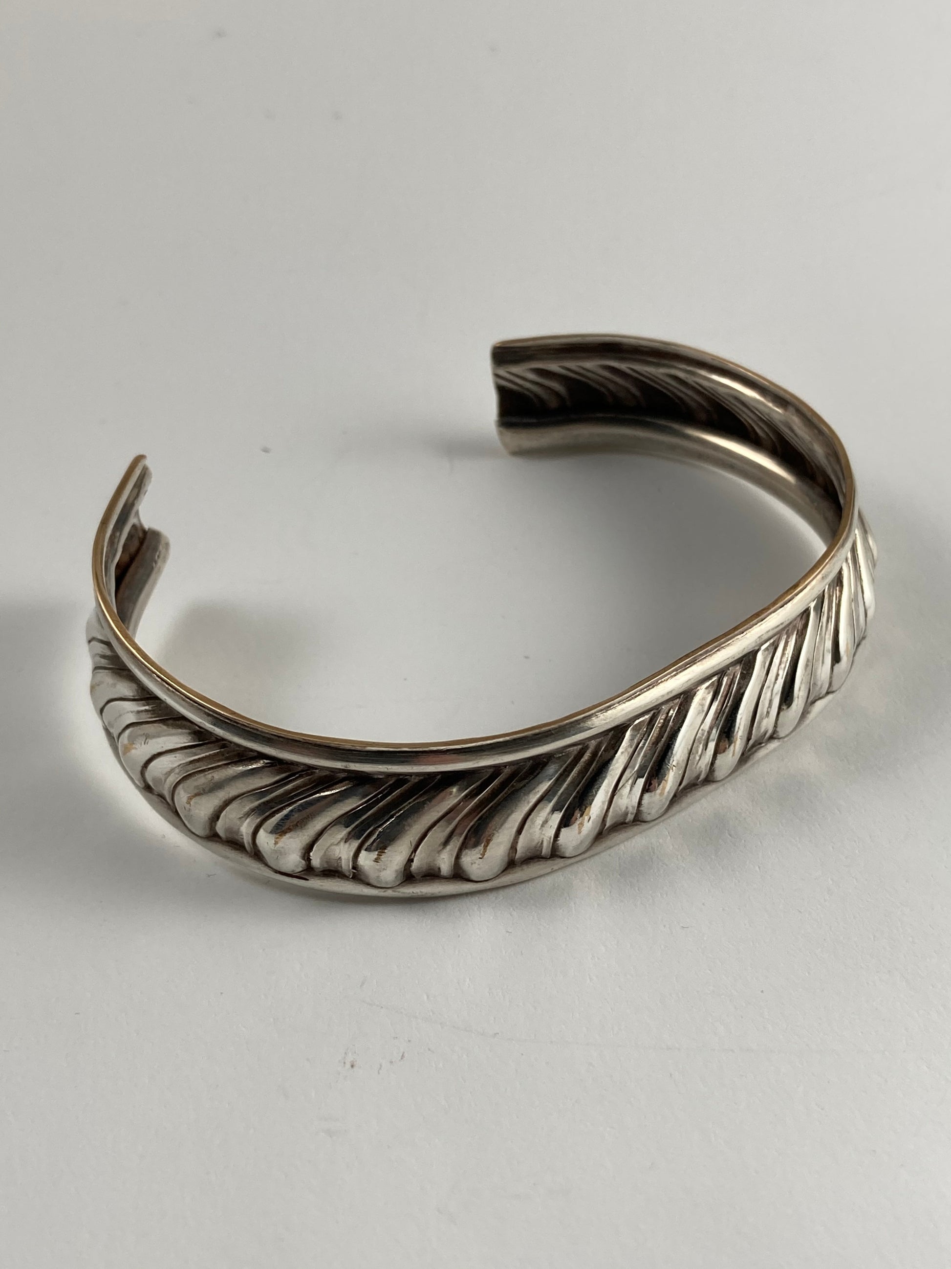 Imagine wearing a bracelet that has served more than just a style statement. The Heirloom Cuff is crafted from a 50+ year-old sterling silver plated serving platter.