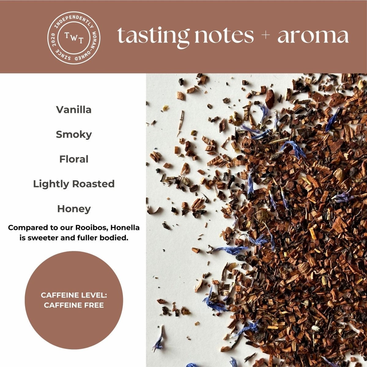 "Honella is hands down the best tea I have had in a long time. I drink a lot of tea and usually stick with the same blends, but I happened upon Tea with Tae at a marketplace, tried a cup, and fell in love. When I was sick it was all I wanted to drink. It has a nice vanilla flavor but you can taste the honey." - Stephanie L., ⭐⭐⭐⭐⭐ review.