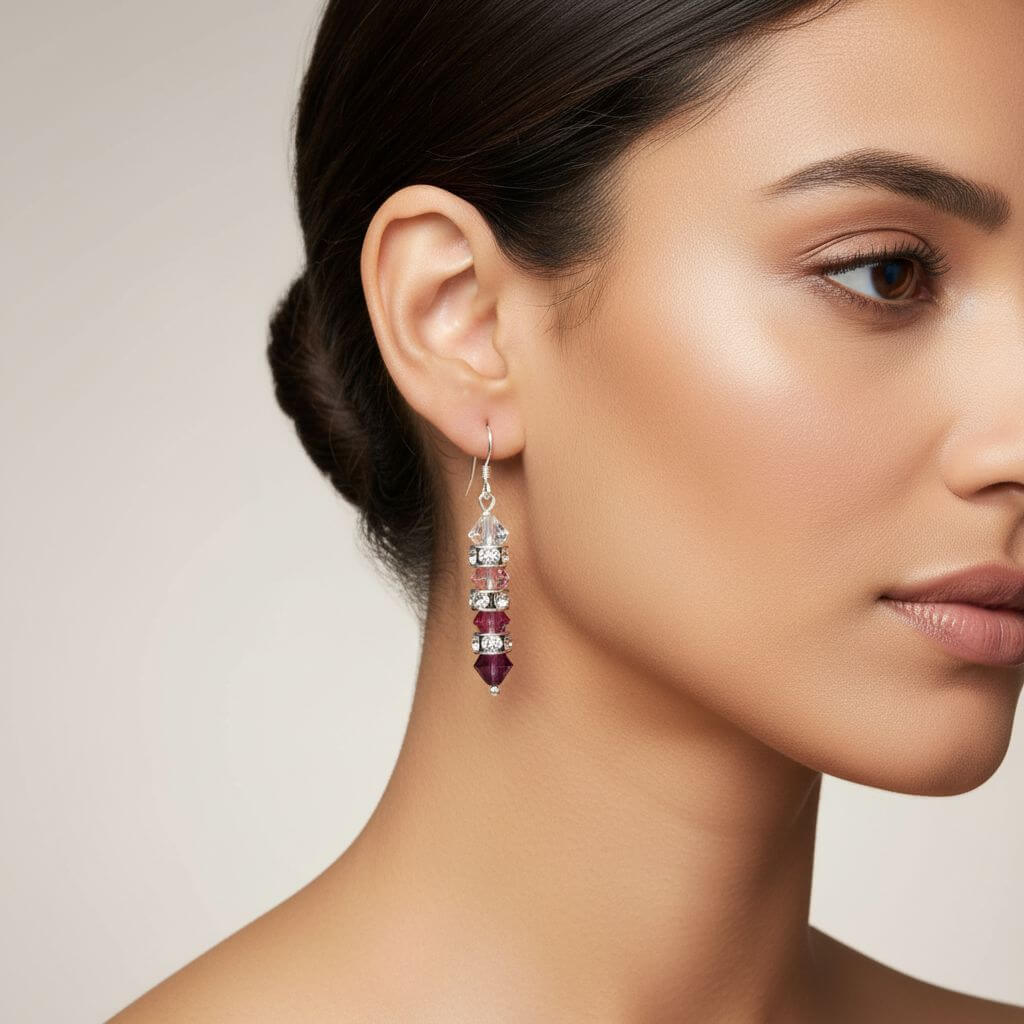 🎯 Stacked Architecture: The vertical stacking of crystals creates elegant length while maintaining a slender, refined silhouette that flatters all face shapes.