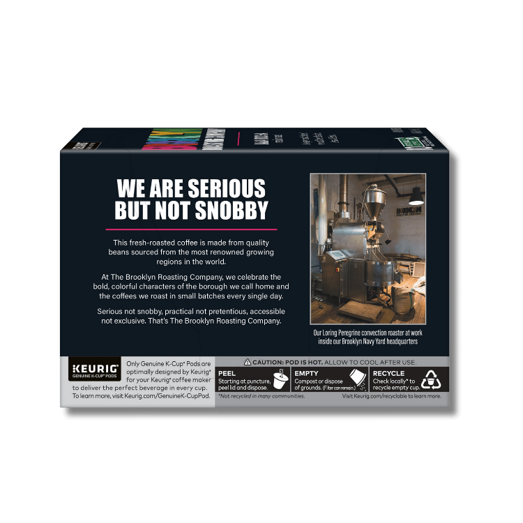 Each Brooklyn Roasting Company® Java Mocha K-Cup® pod is filled with freshly ground, sustainably sourced coffee beans and is compatible with all Keurig® single serve coffee makers. Simple. Delicious. And recyclable.* Enjoy the same great-tasting coffee you know and love, and when you’re done, please peel, empty, and recycle.