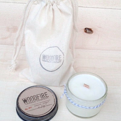 American grown soy wax combined with a soft fruitwood wick add a warm rustic ambiance to any home. Wood wicks crackle as they burn for a lovely nestled by the fire feel. Our 4oz jelly jar will burn for approximately 25 hours. Jelly jars come with a rustic tin lid and a hand-stamped cotton bag (retail orders only).