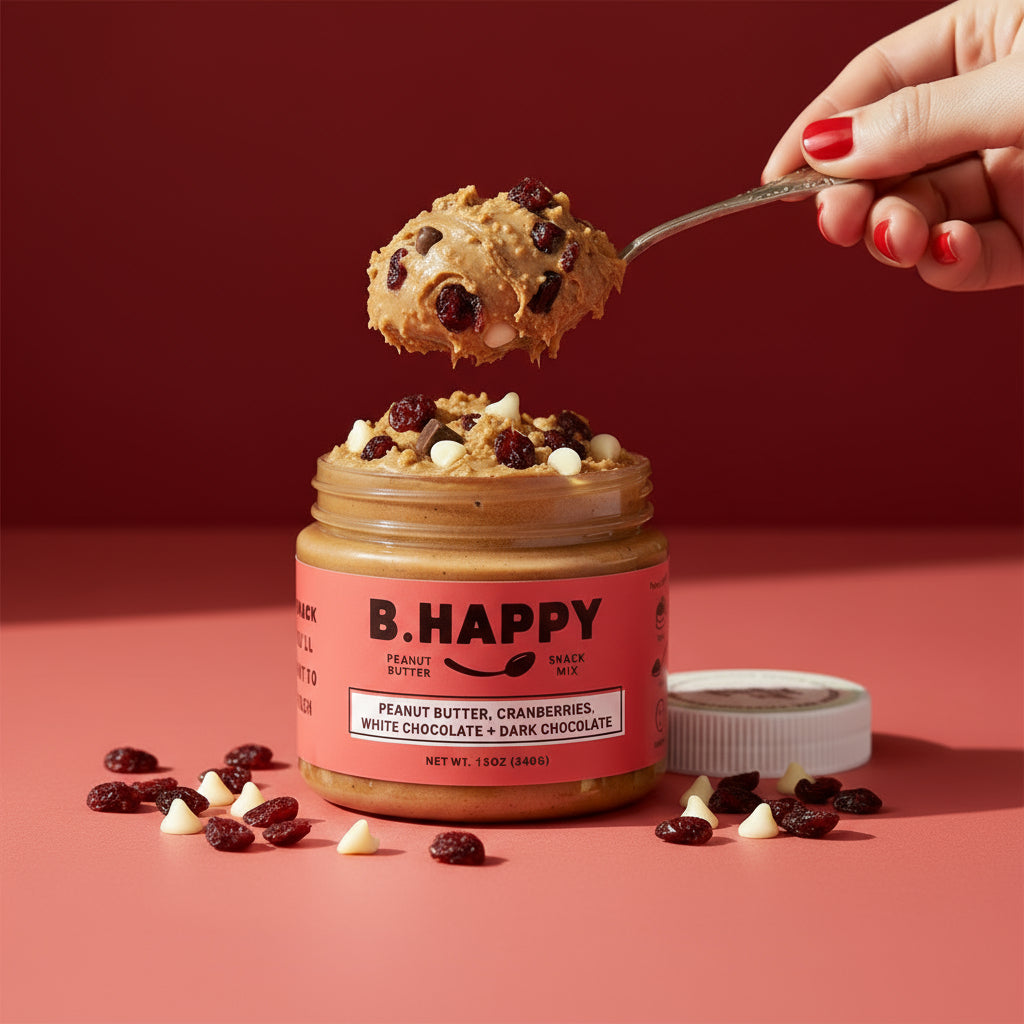 Bringing peace and harmony with dark chocolate, white chocolate and dried cranberries in honey roasted peanut butter.