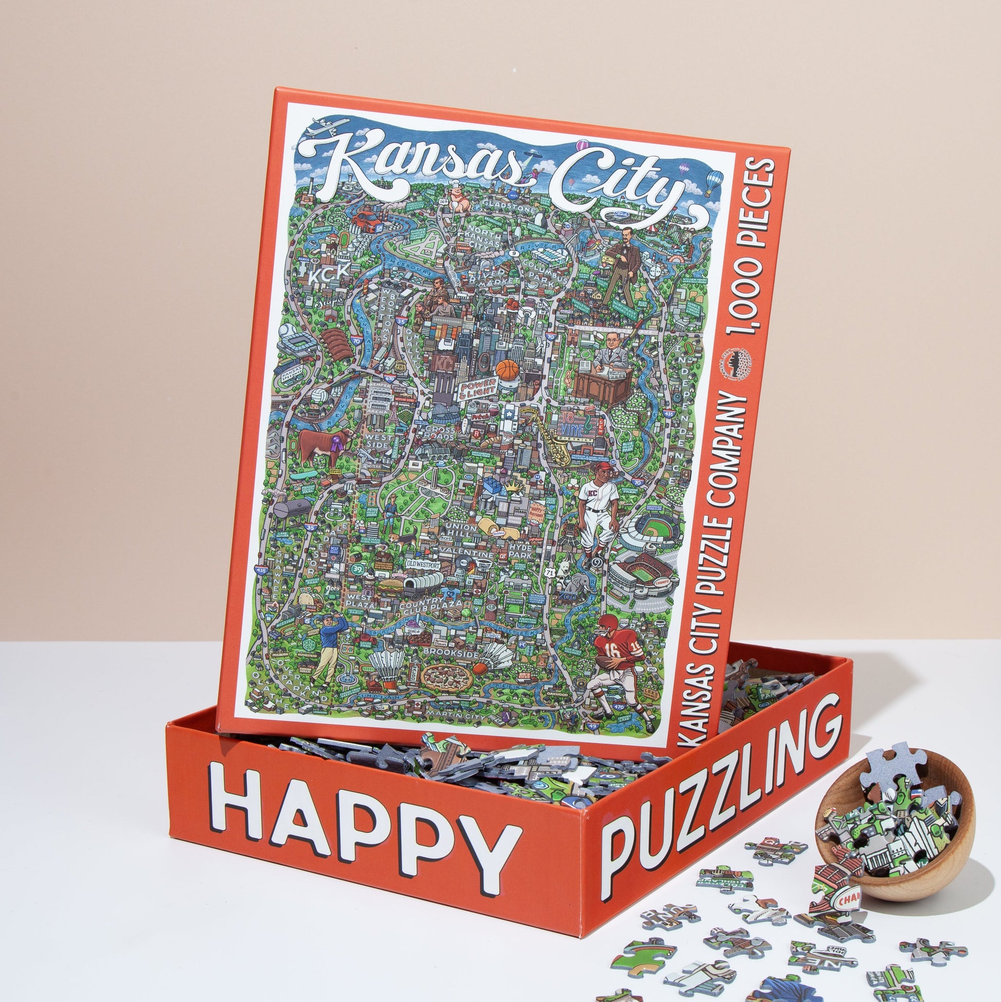 Discover all the cool quirks and unique oddities that makes Kansas City so great with this super fun and incredibly detailed 1,000 piece map puzzle. Featuring restaurants, shops, and icons that locals know and love; you'll have a blast exploring your favorites and discovering something new. Artist Mario Zucca's vibrant and crisp illustrations makes this puzzle a work of art and highly frame worthy. It's the perfect gift for every fan of Kansas City.