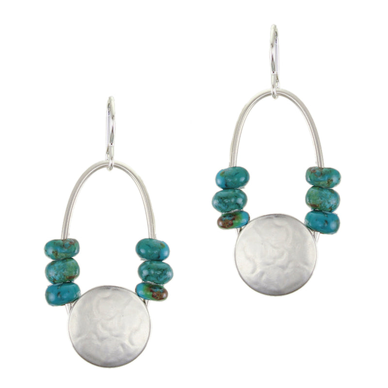 Large Disc with Oval Ring and Turquoise Beads Wire Earrings