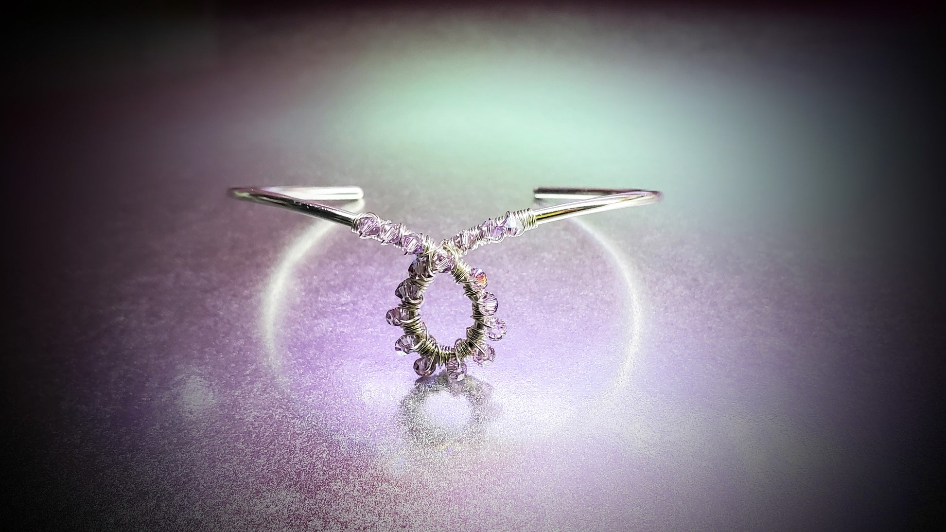 Wearing this exquisite handmade Lavender Crystal Cancer Ribbon Awareness Bangle. This sterling silver-wire-wrapped Crystal Cancer Ribbon Cuff Bangle by Alexa Martha isn’t just a fashion choice; it’s a powerful symbol of hope and support! Whether for yourself or as a heartfelt gesture for a friend, it will ignite inspiring conversations and uplift spirits.