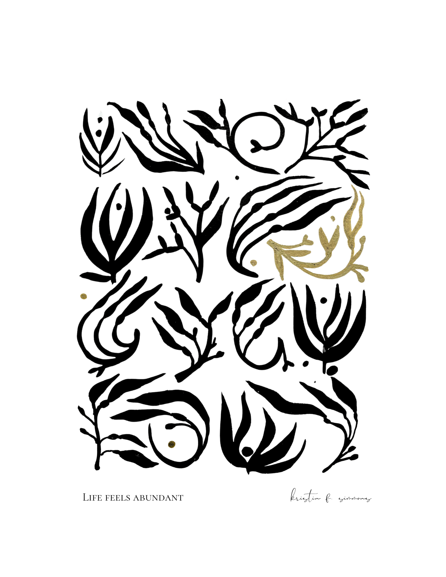 Fine Art Giclée Print of "Life is Abundant" from the Seaweed Semaphore Series. The original was crafted with Japanese Sumi Ink on Cold Press 100% Cotton Paper. Your print will be on 100% cotton paper with archival inks.