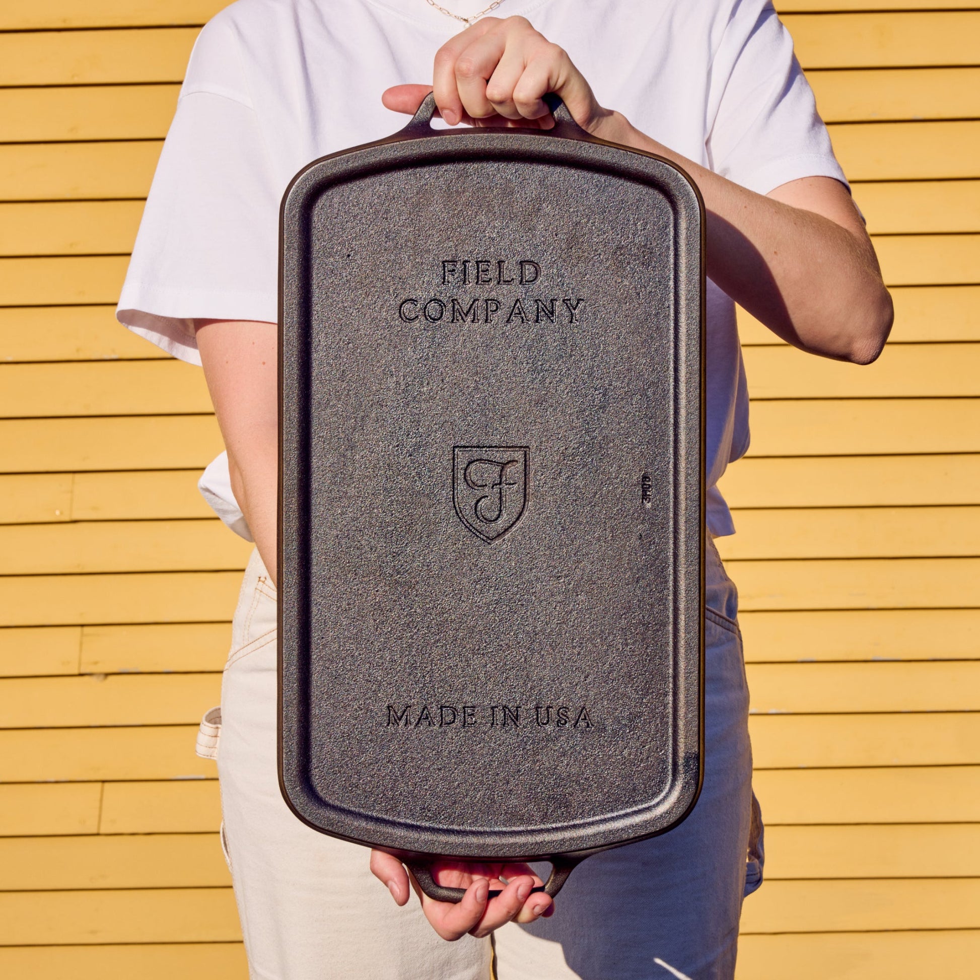 The Long Cast Iron Griddle is our vintage-style double-burner griddle. A precisely-machined 9 x 16 ½-inch cooking surface covers two stovetop burners, making room for large batches of pancakes, french toast, bacon or burgers, and creating an extended searing surface for ambitious holiday roasts.