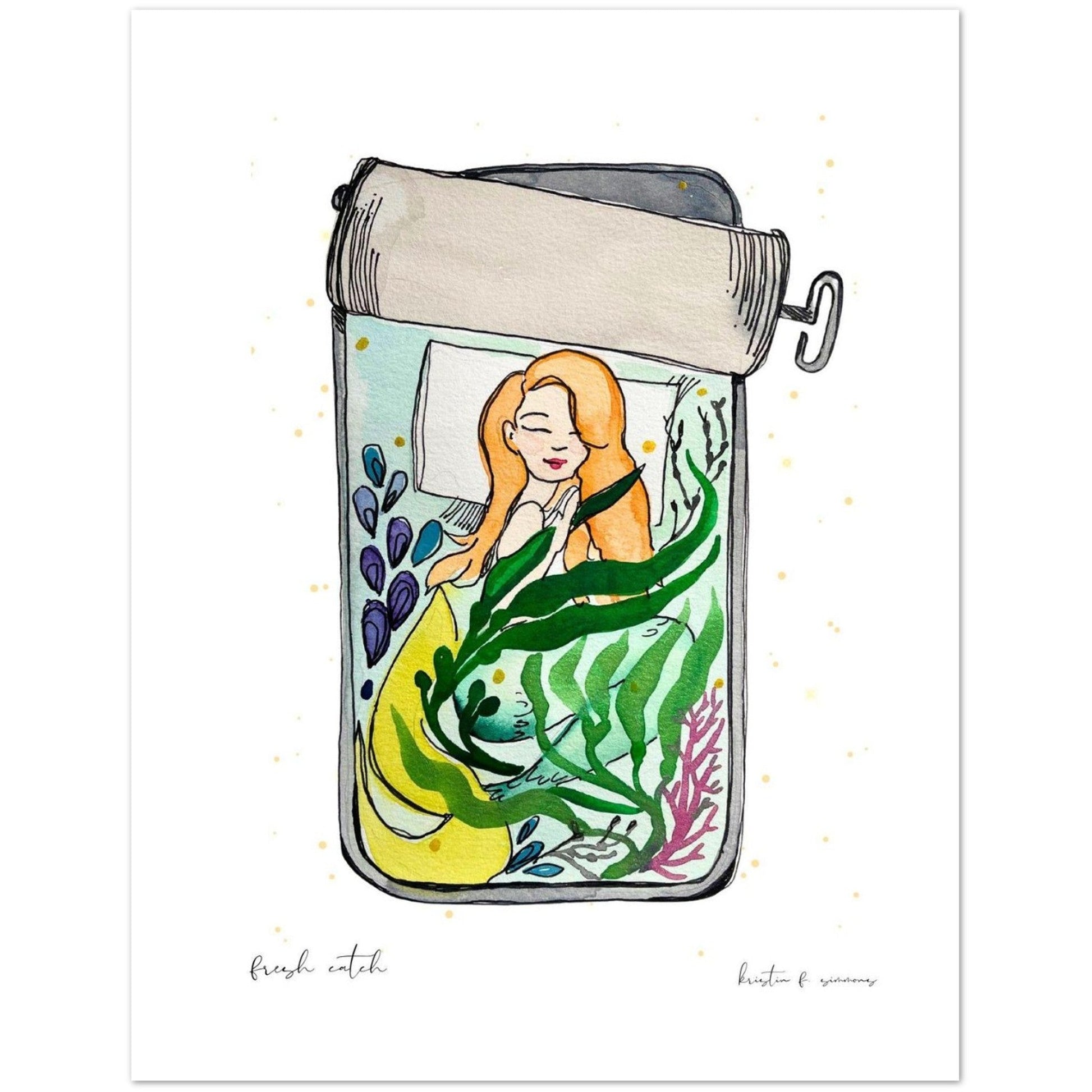 Create a one-of-a-kind sentiment with these personalized folded greeting cards (pack of 4), perfect for any occasion. Featuring the beloved siren design called, "Tinned Fish Mermaid." The original was crafted with Japanese Kuretake Gansai Tambi Watercolors. Each card brings artistry and elegance to your greetings.