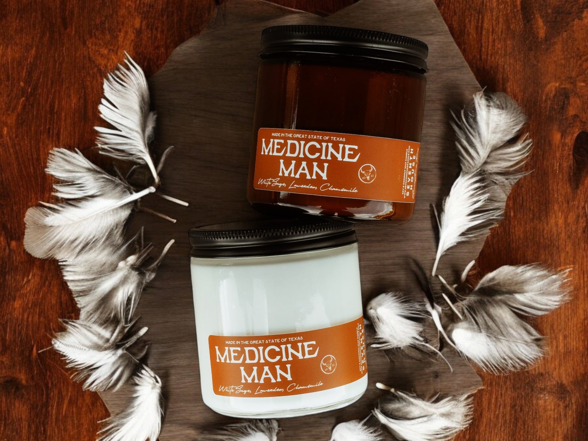 Our "Medicine Man" candle is a camphoraceous blend of herbs, lavender, and aromatic woods. Sage, rosemary, and chamomile awaken the earthiness of lavender, while hints of sandalwood and cedar in the base are reinforced by clove, lavandin, and cedarwood essential oils. This clean, herbal scent summons an apothecary atmosphere.